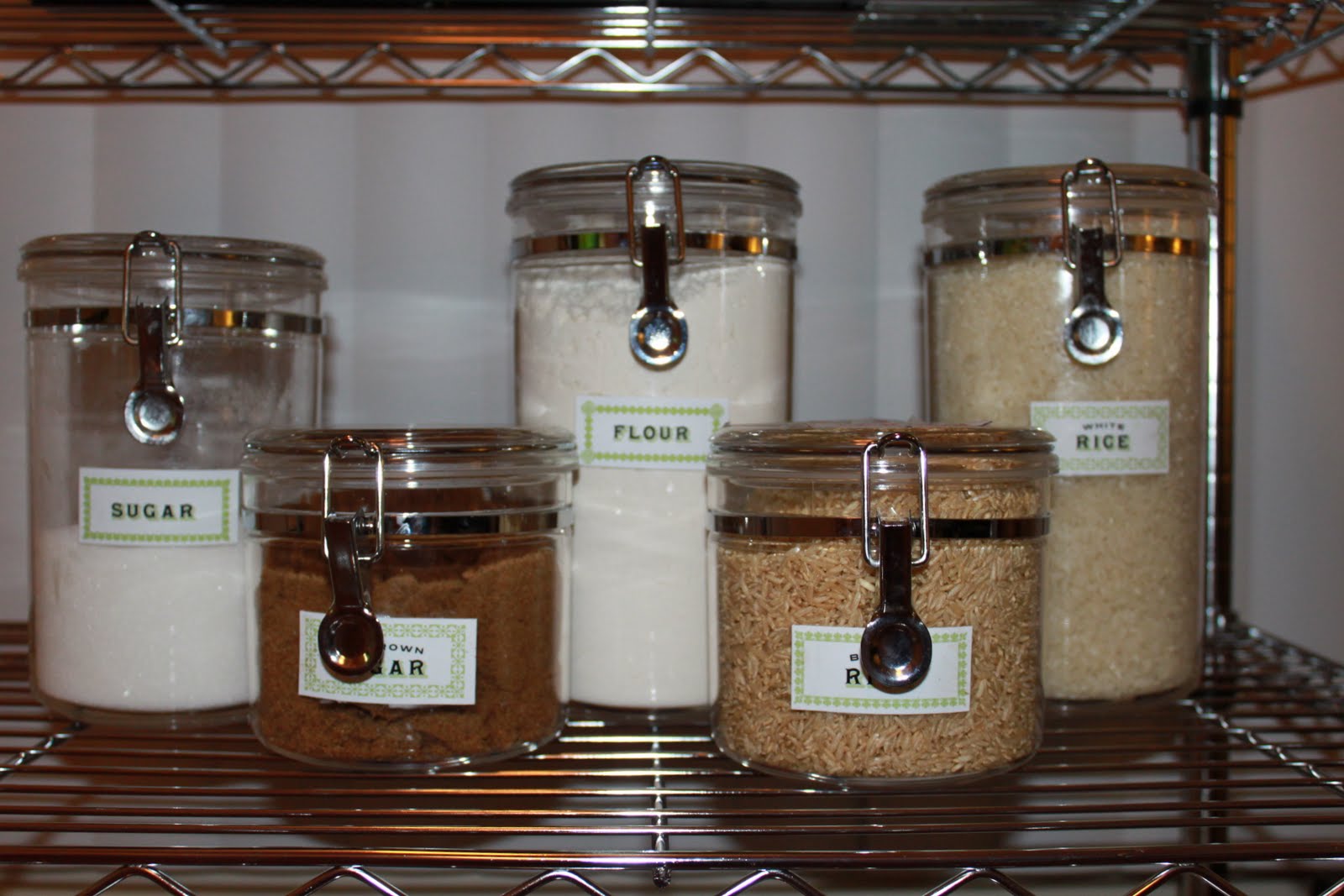 Add labels in your pantry on jars and shelves. I added labels to my five pantry shelves for snacks, drinks, jars/cans, boxes, and rice/pasta. It not only looks nice, it helps my husband know how I have the pantry organized.