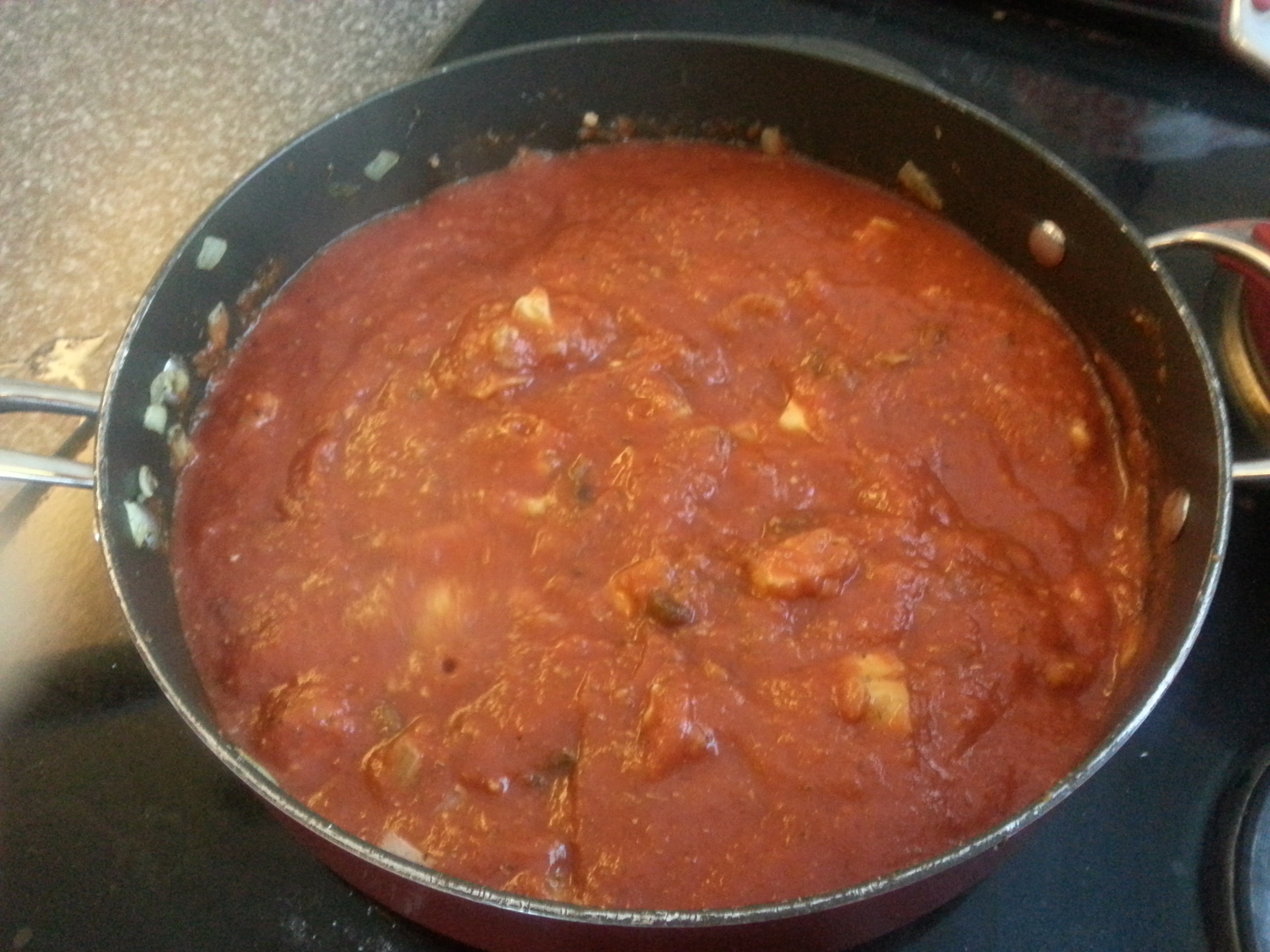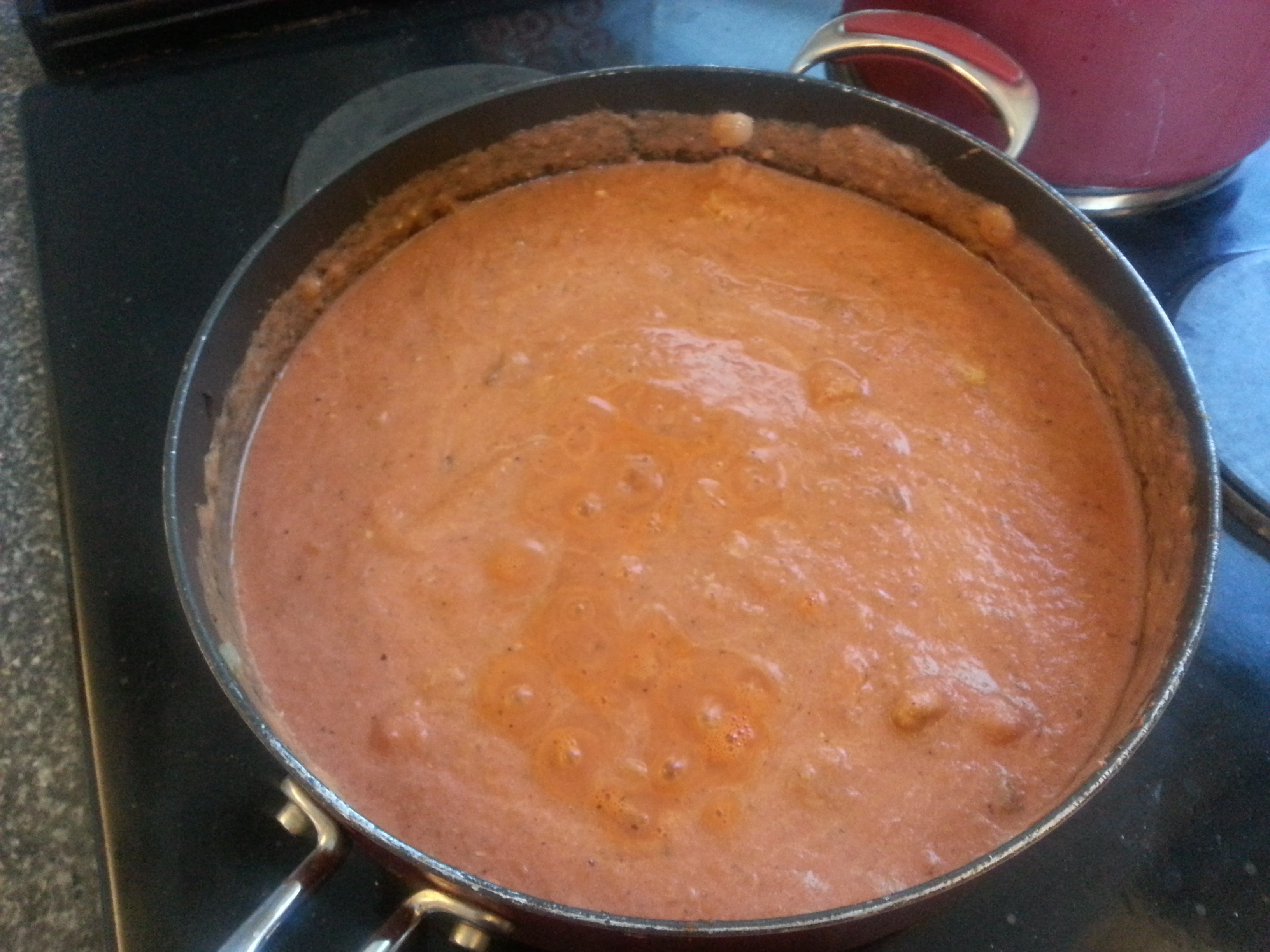 I found a recipe on Better Crocker for a tomato Alfredo sauce and I tweaked it into my own. I use my own spaghetti sauce in this recipe.