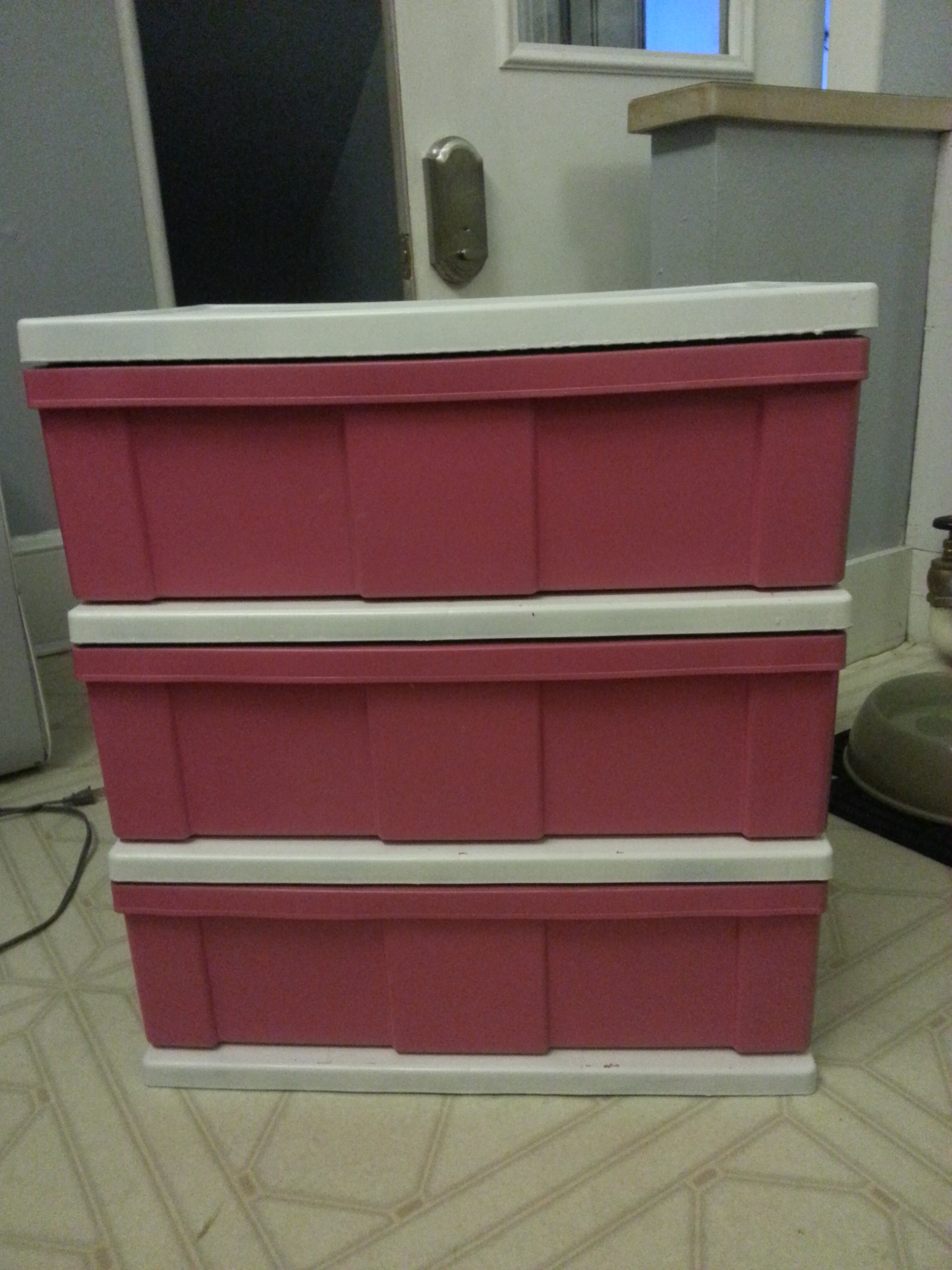 Last summer, I was given a 3 drawer storage unit from my in-laws. I wanted to use it for my girls’ toys. But the thing was, the color of the unit wasn’t really girly. It was yellow, red, green, and blue. The color wouldn’t fit in with my girls’ things.