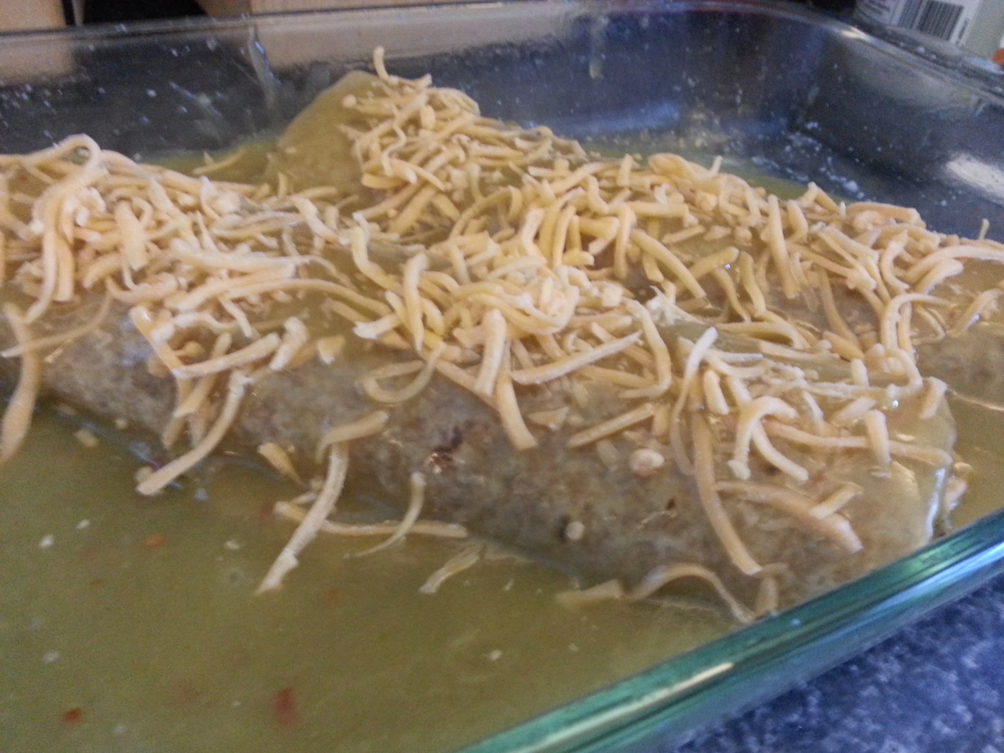 I make my chicken enchiladas very simple. I use canned green sauce. I don’t make my own special sauce. Sometimes I like having simple meals on certain days.