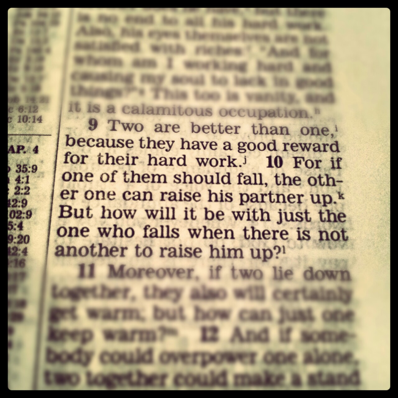 I love this verse from Ecclesiastes 4:9-10, because it shows that it is better to be with someone, either as the love of your life or as a friend.
