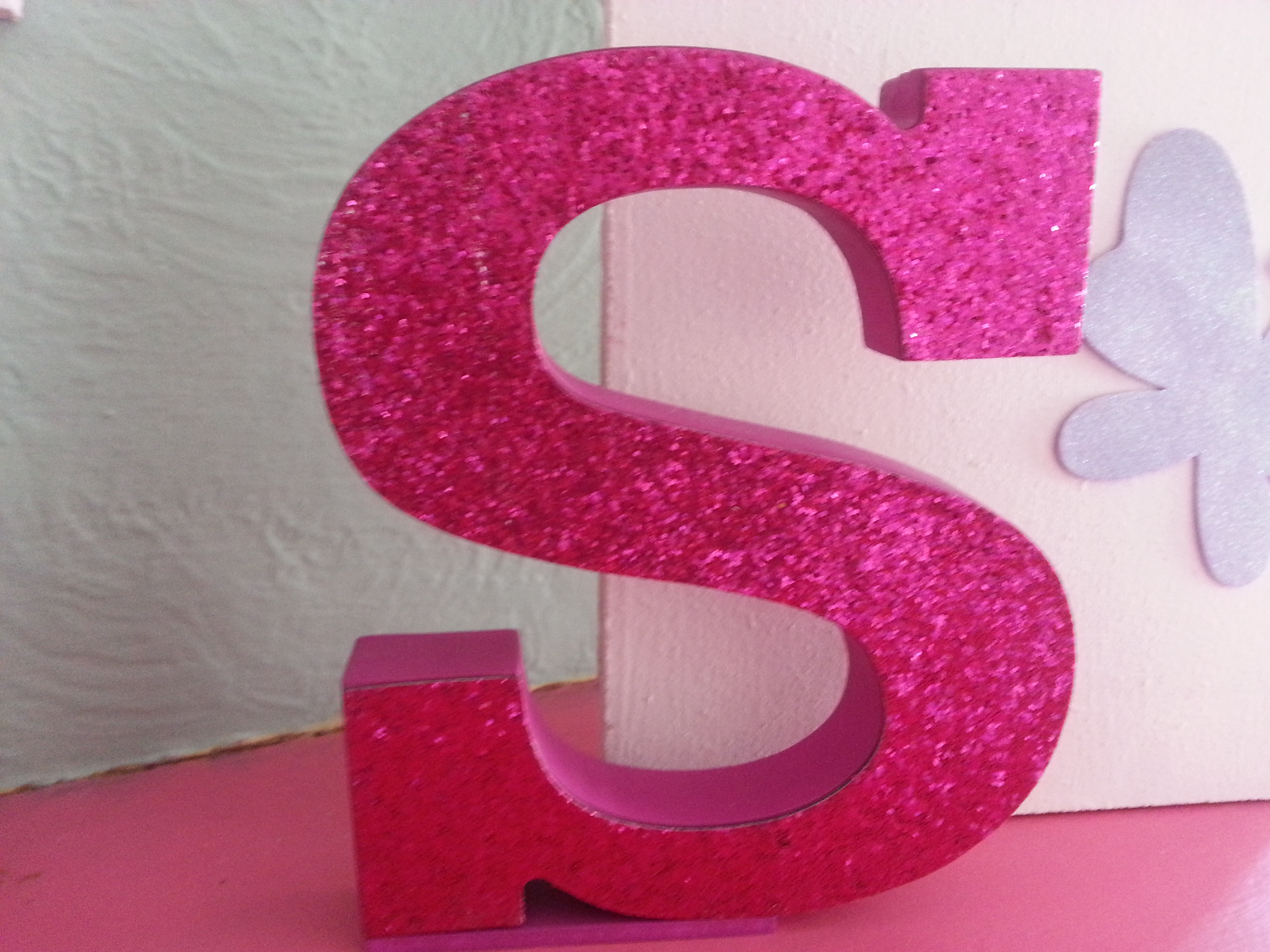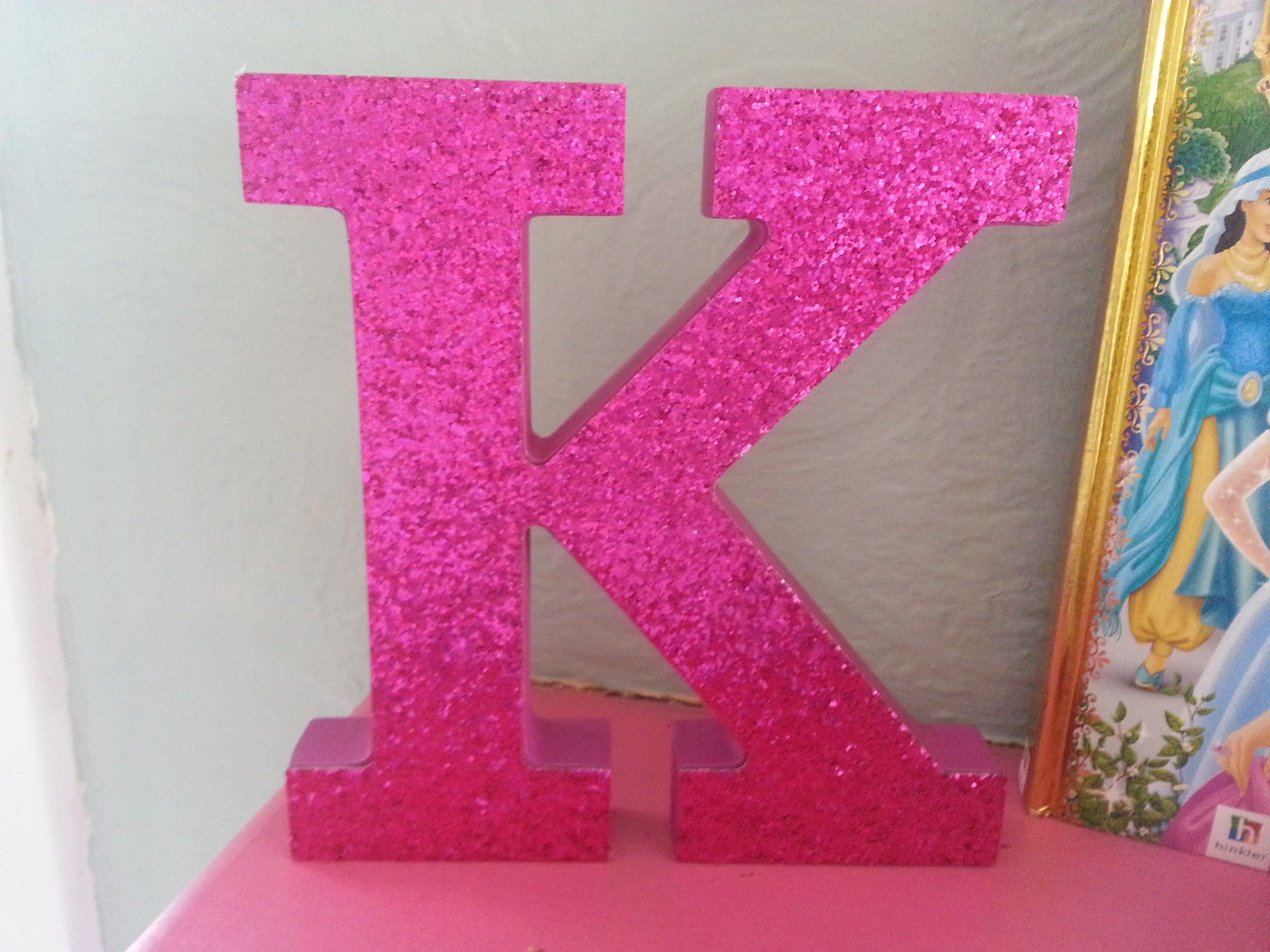 We bought pink glittered letters K and S for our girls, Katie and Sophia’s room. The letters were perfect to add to their mantel in their room.