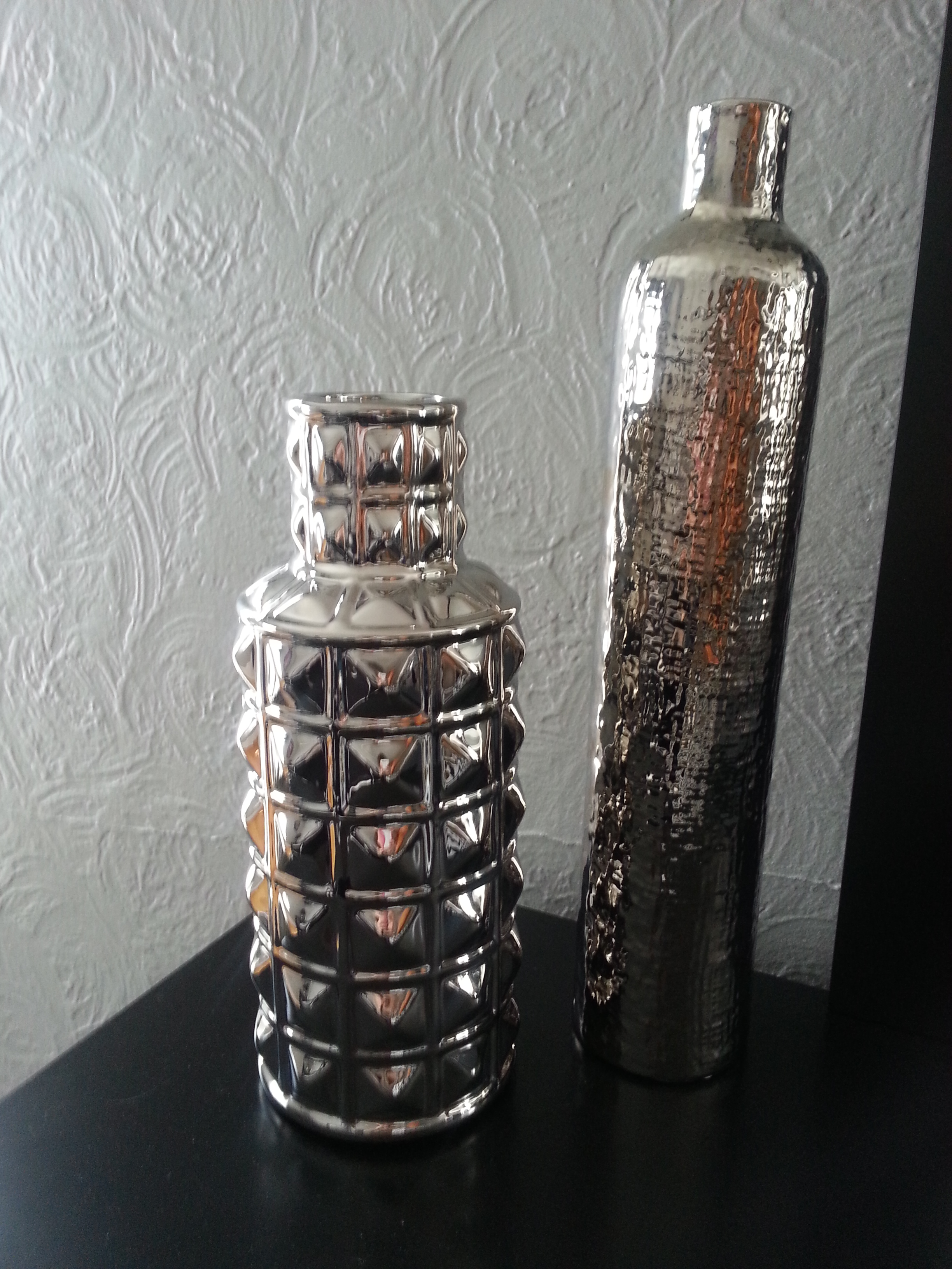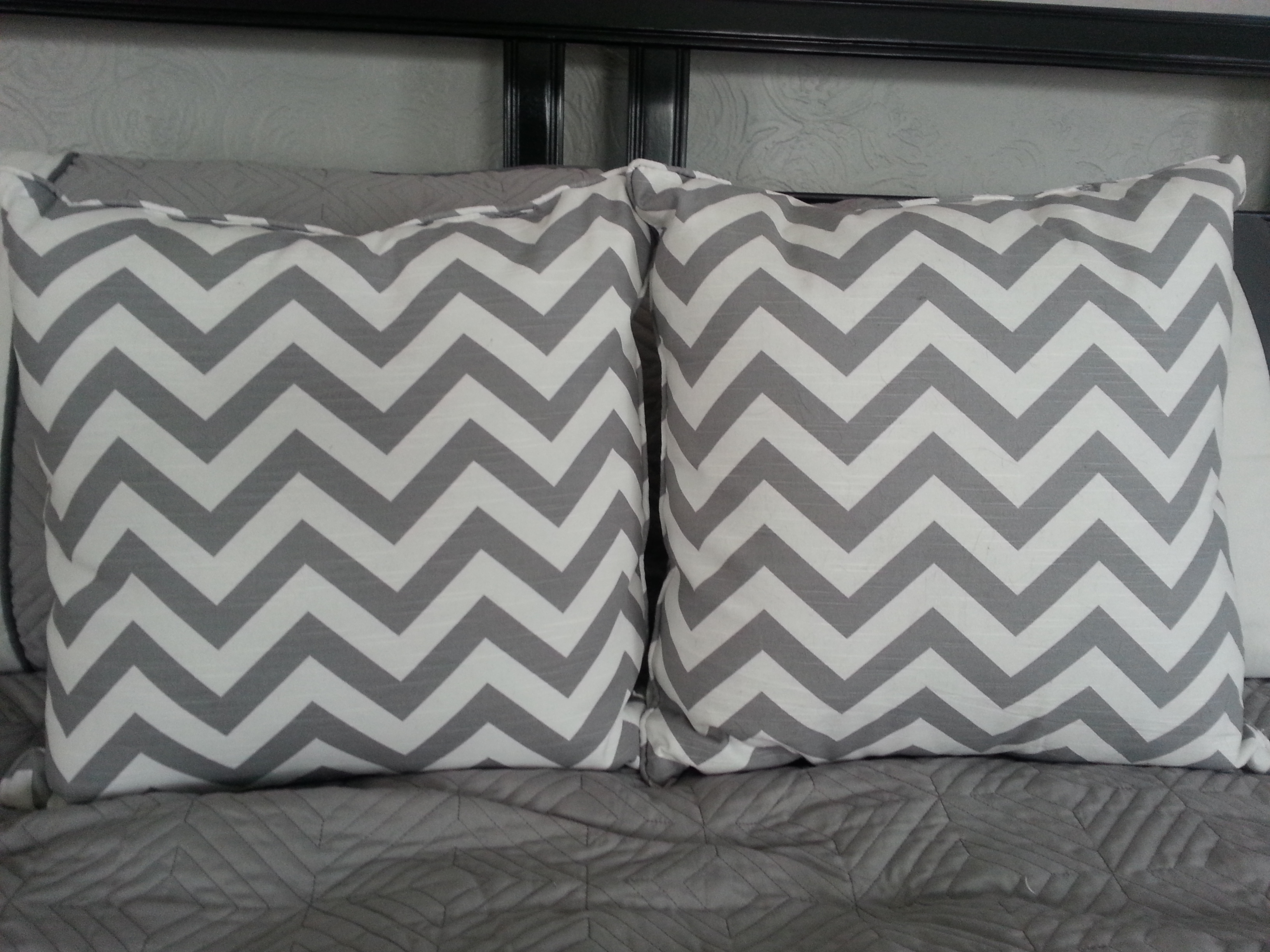 We also found several items for our bedroom. We bought couple silver vases to add to the top of our dresser. We also bought two white and grey chevron pillows for our bed.