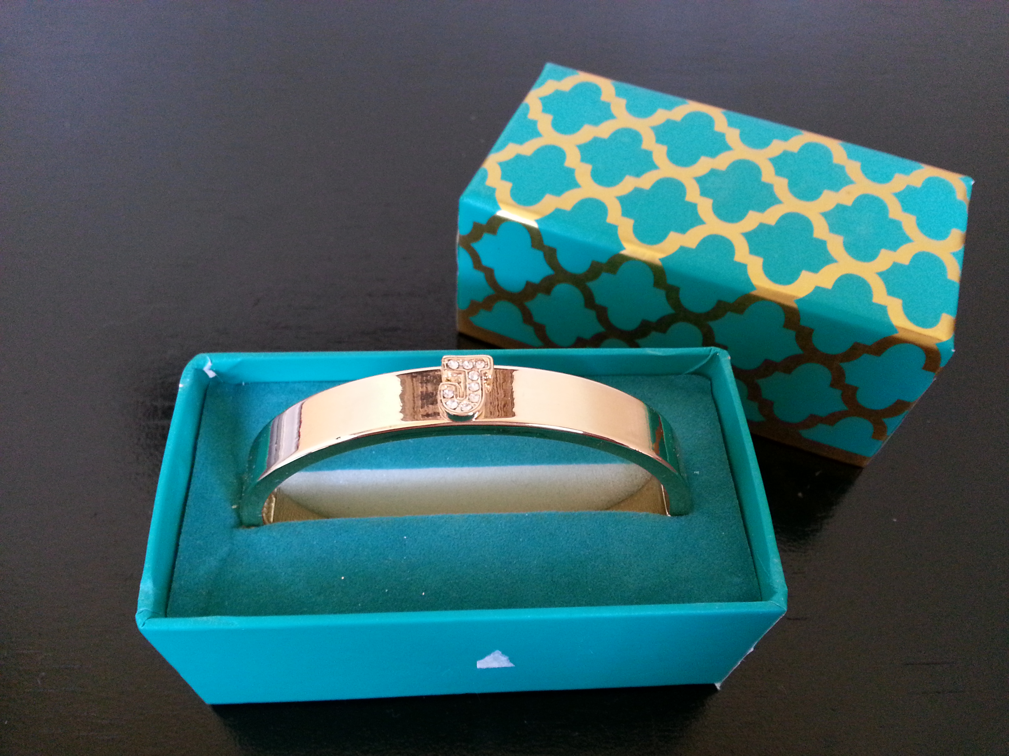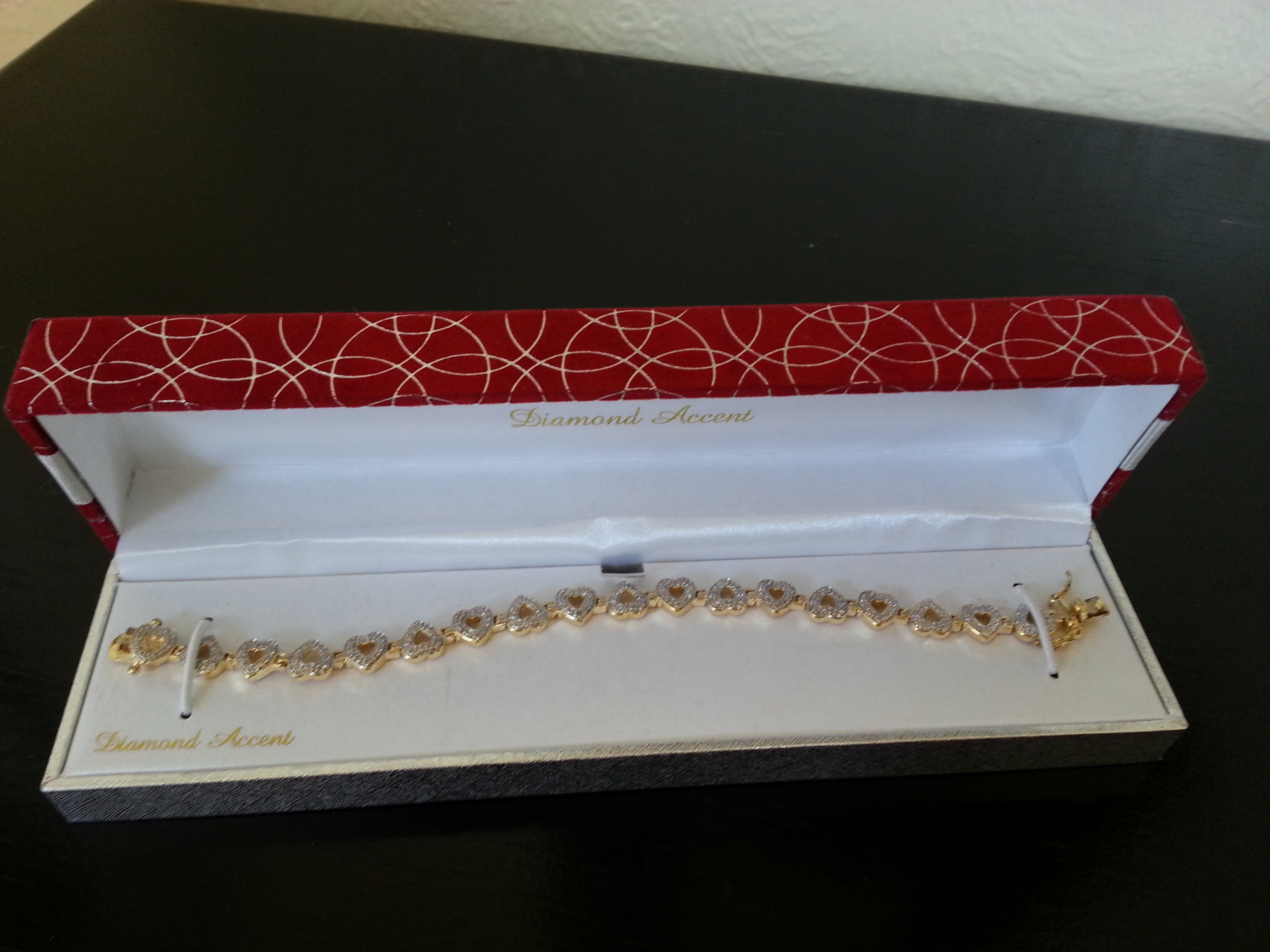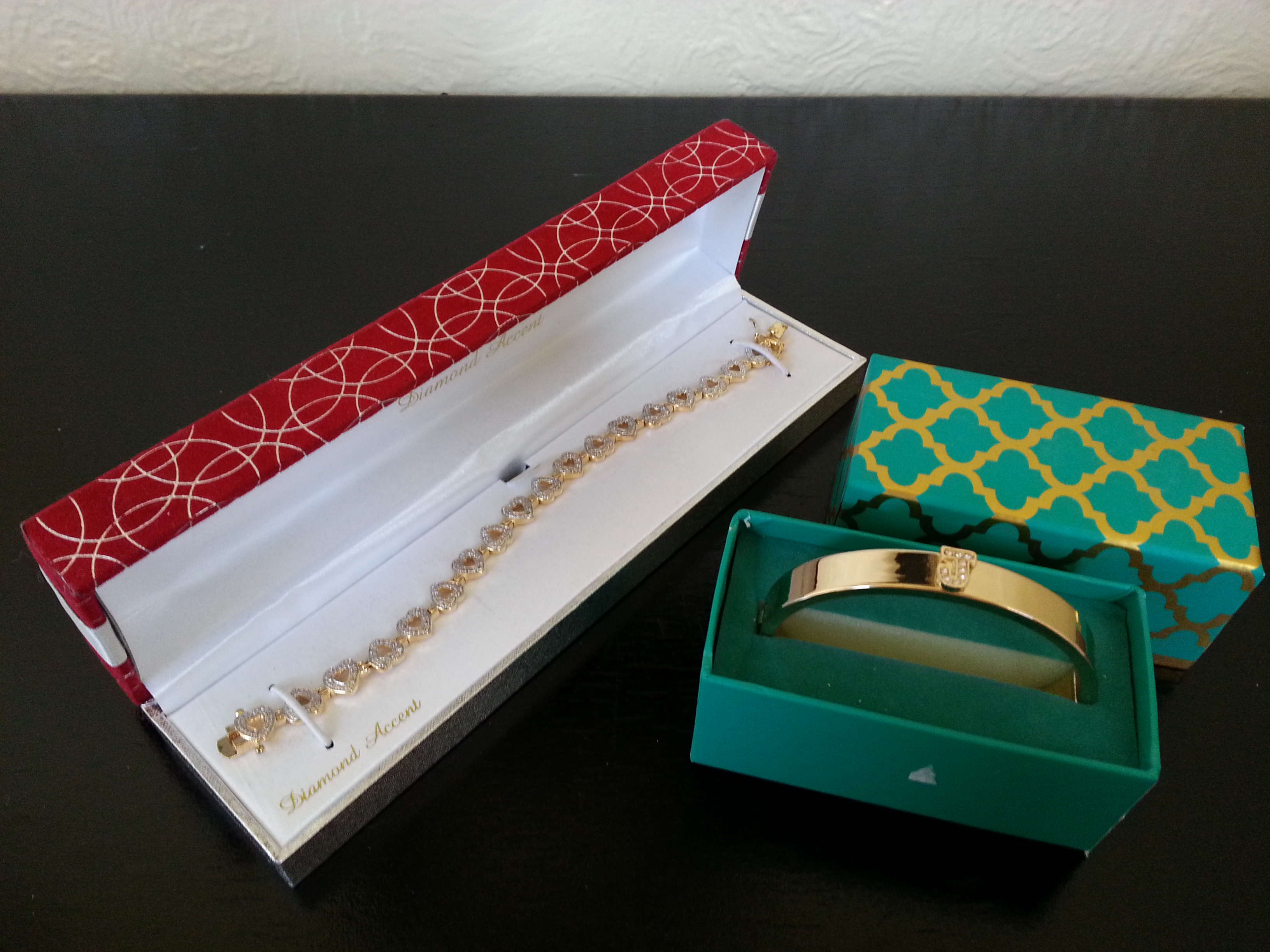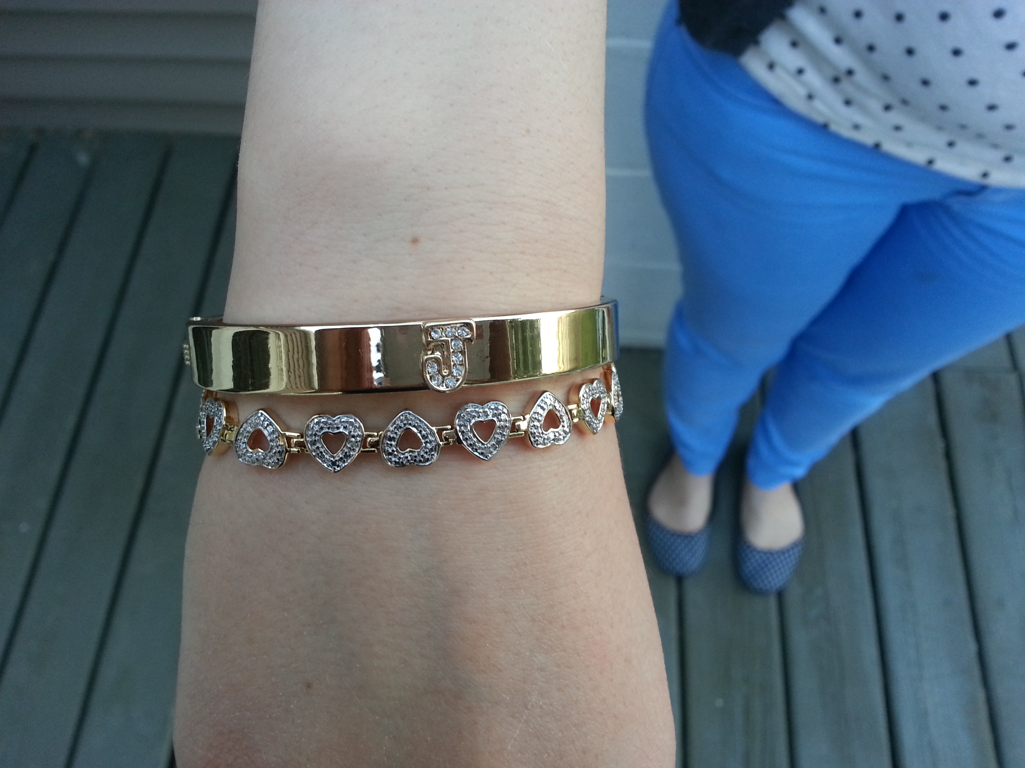My mother-in-law and father-in-law bought me couple gold bracelets. The first bracelet is solid gold and has a letter J in the middle. The second bracelet has many hearts linked together. I love the bracelets! The bracelets look great worn together. Don’t you love the boxes the bracelets came in? The boxes are so pretty!