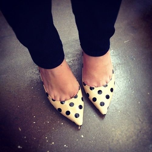 I love shoes with polka dots. I own a pair of navy blue flats with white polka dots. They are one of my favorite pair of flats. I found couple polka dotted flats on Pinterest that I wouldn’t mind having in my closet.