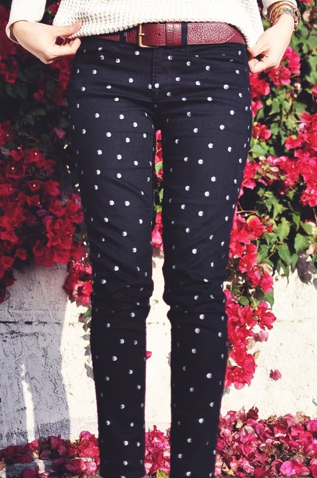 As you may know from my Spring Fashion Wishlist, I’m searching for the perfect polka dotted pants. I’m looking for black, navy blue, or gray pants with white polka dots. I haven’t had any luck yet. I found couple on Pinterest that I would love to wear.