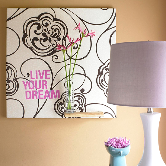 Wallpaper can also be framed and hung on a wall. The framed wallpaper can be displayed like the picture below or in different sized frames. Wallpaper can also be made into an art piece by wrapping it around a canvas and adding a quote to the piece like the picture below.