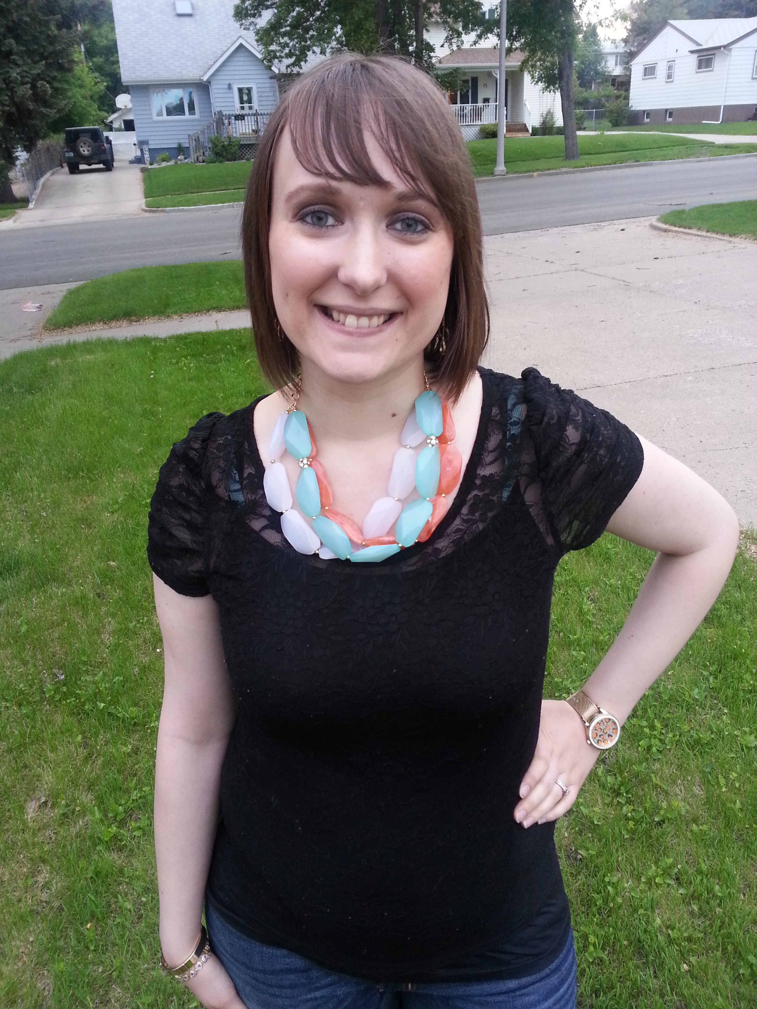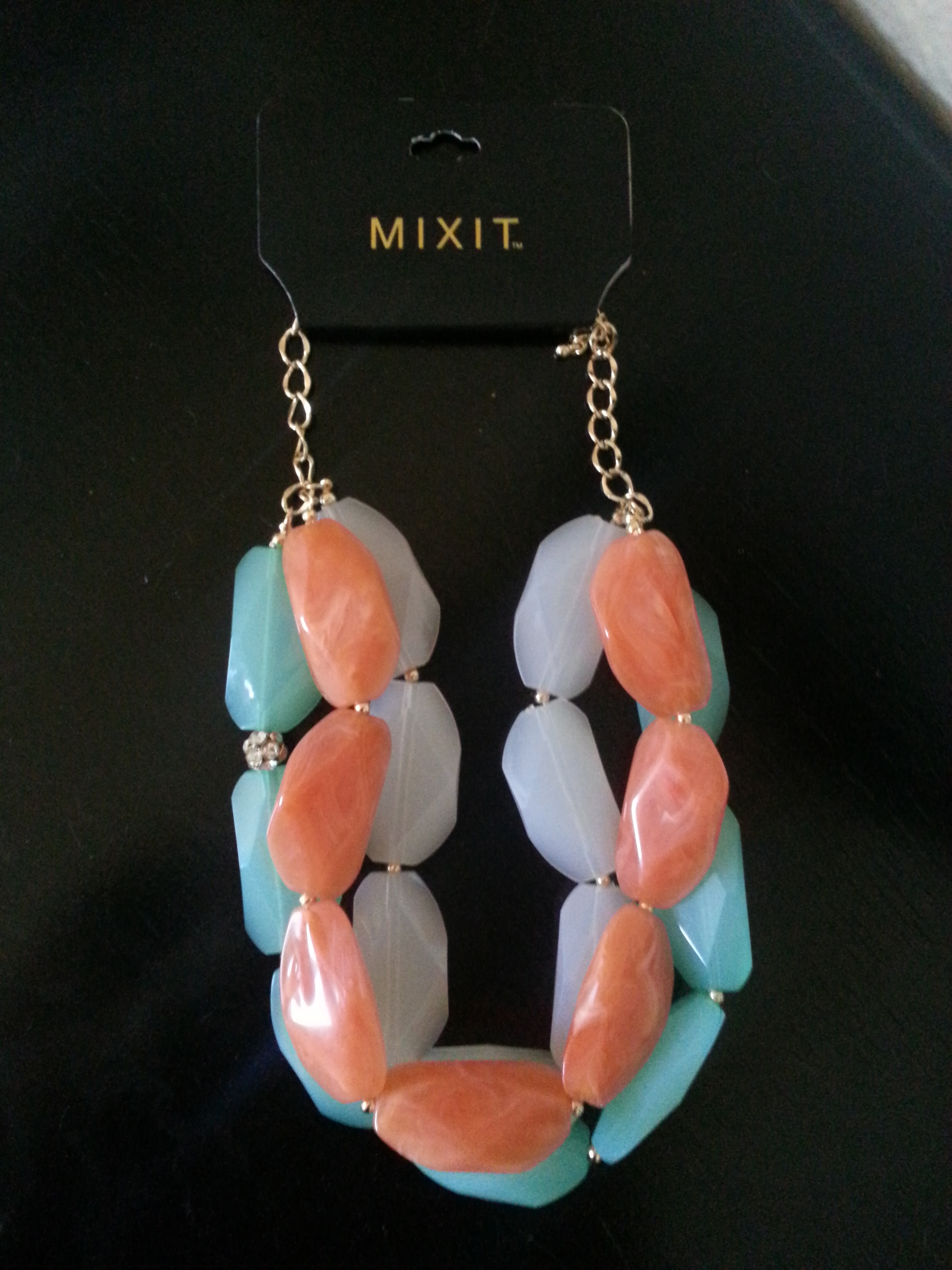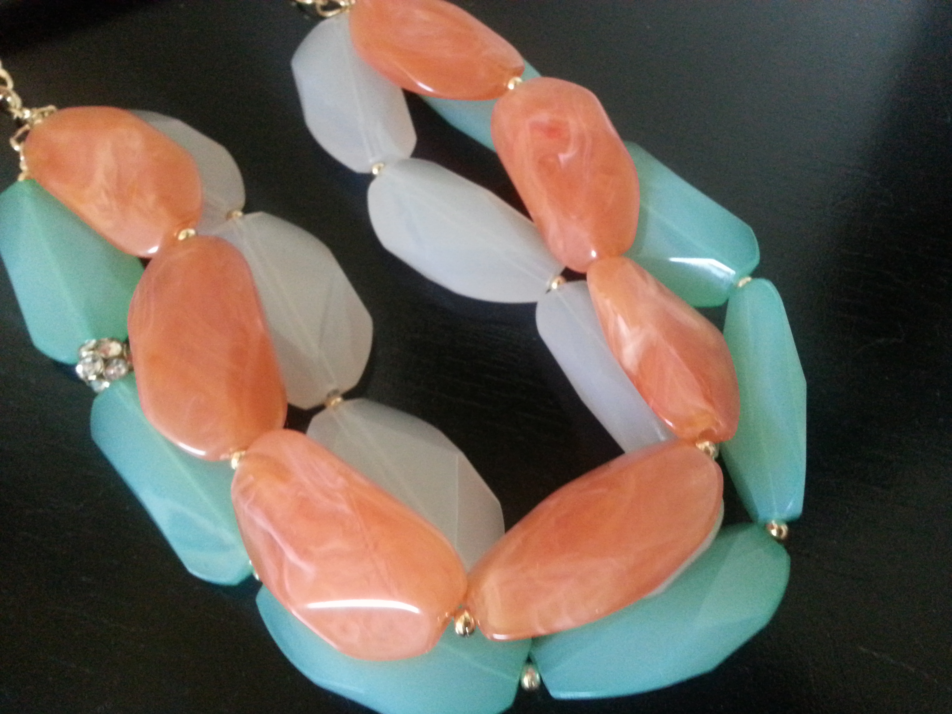 So the other day when I was browsing the jewelry section in JC Penney, I saw this Mixit mint, coral, and white stoned necklace. I wasn’t planning on buying anything, but when I saw this necklace, I really wanted it. It had the colors I loved, so I knew I had to buy it.