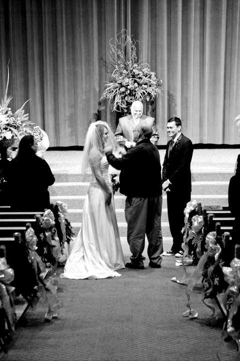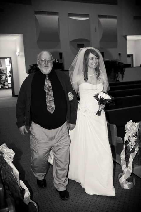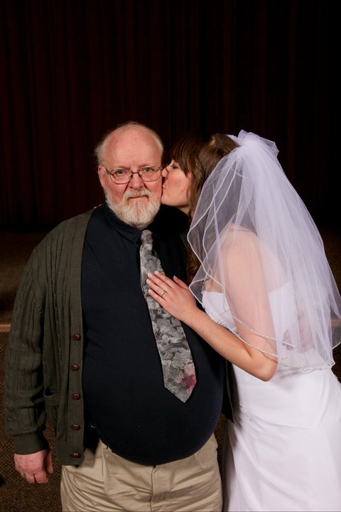 Below are pictures of my Father and I at my wedding. The first picture is of me kissing my Father on the cheek before my ceremony. The second picture is of my Father walking me down the aisle. The last picture is of my Father giving me away to my husband.