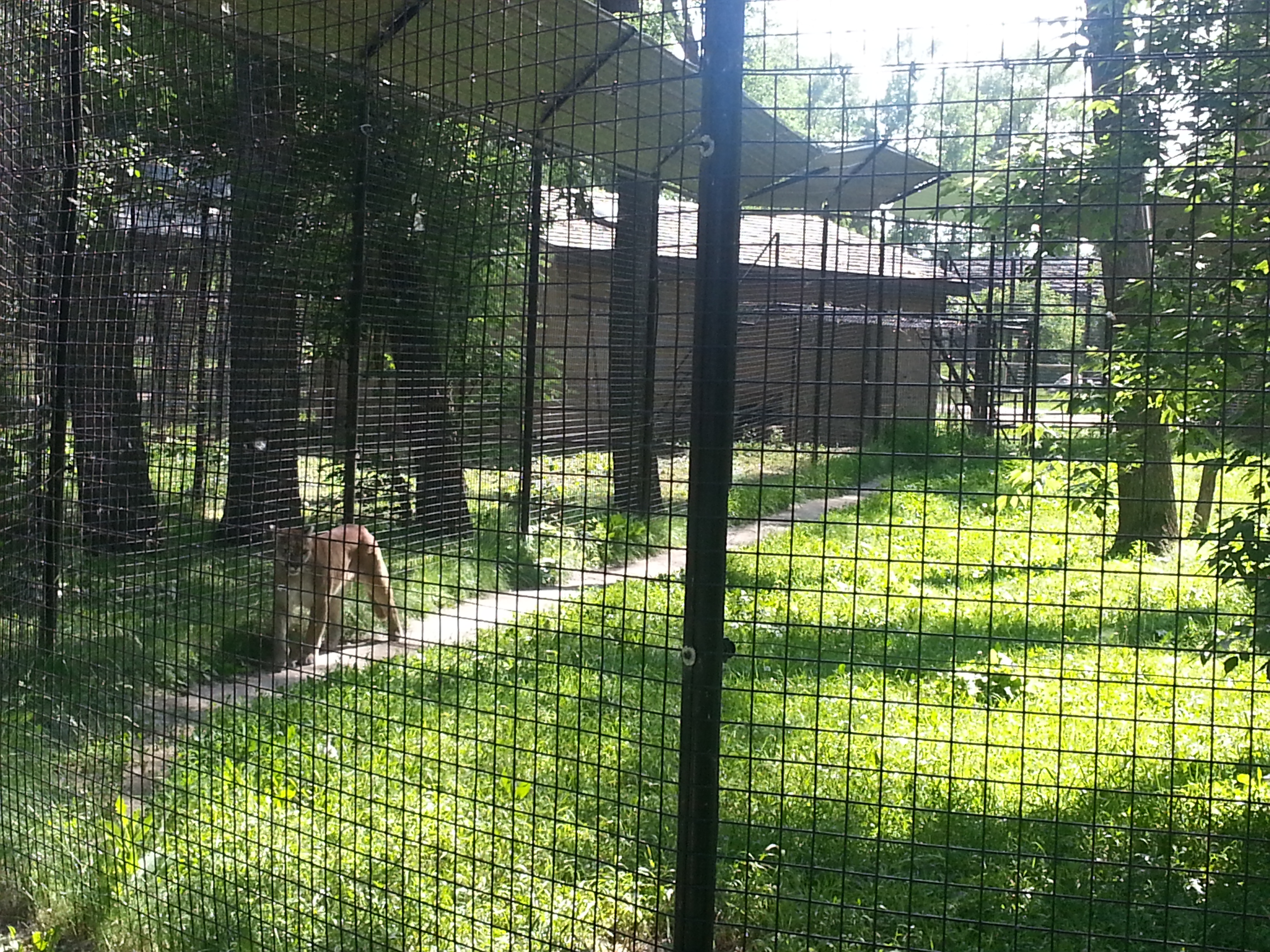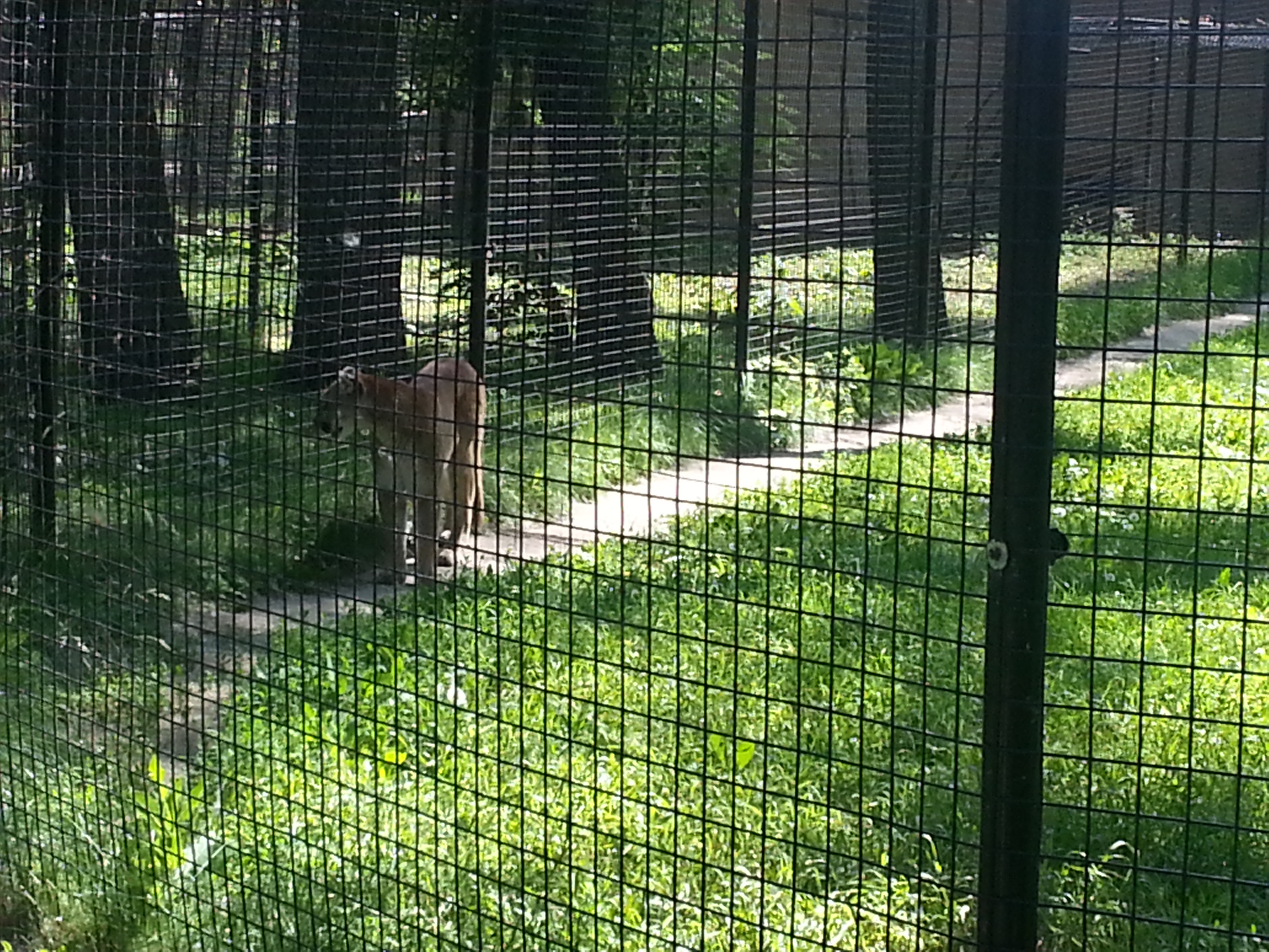 We also saw the mountain lions. One of the mountain lions was walking back and forth looking at the bob cat in the cage next to him. Katie and Sophia really liked seeing the big kitties.