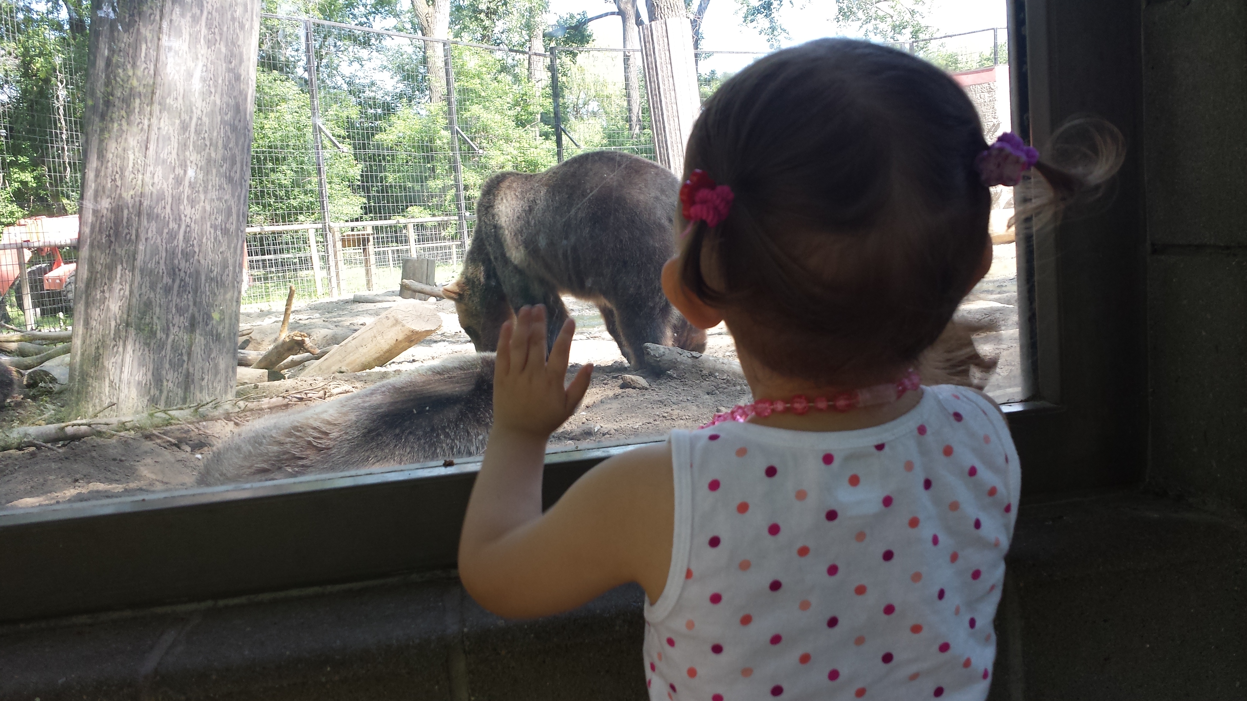 One of the best animals to see at the zoo is the bears. There are four bears in the cage. We normally find the bears sleeping, laying in the water, or rumbling around with another bear. Katie and Sophia really enjoyed seeing the bears. The loved looking through the windows to see the bears moving around. They were growling after they saw the bears.