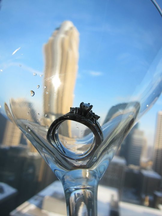 My husband took a glass from the bar in our suite and put our rings inside to get couple close up photos. I especially love the first photo with Minneapolis in the background.