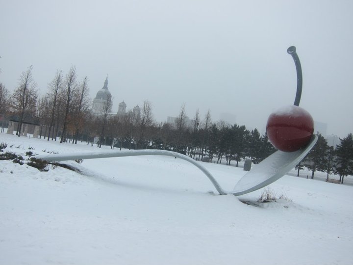 My husband and I did lots of sight seeing while in Minneapolis. We went to the Sculpture Garden. We saw the giant spoon with the cherry on top and other sculptures.