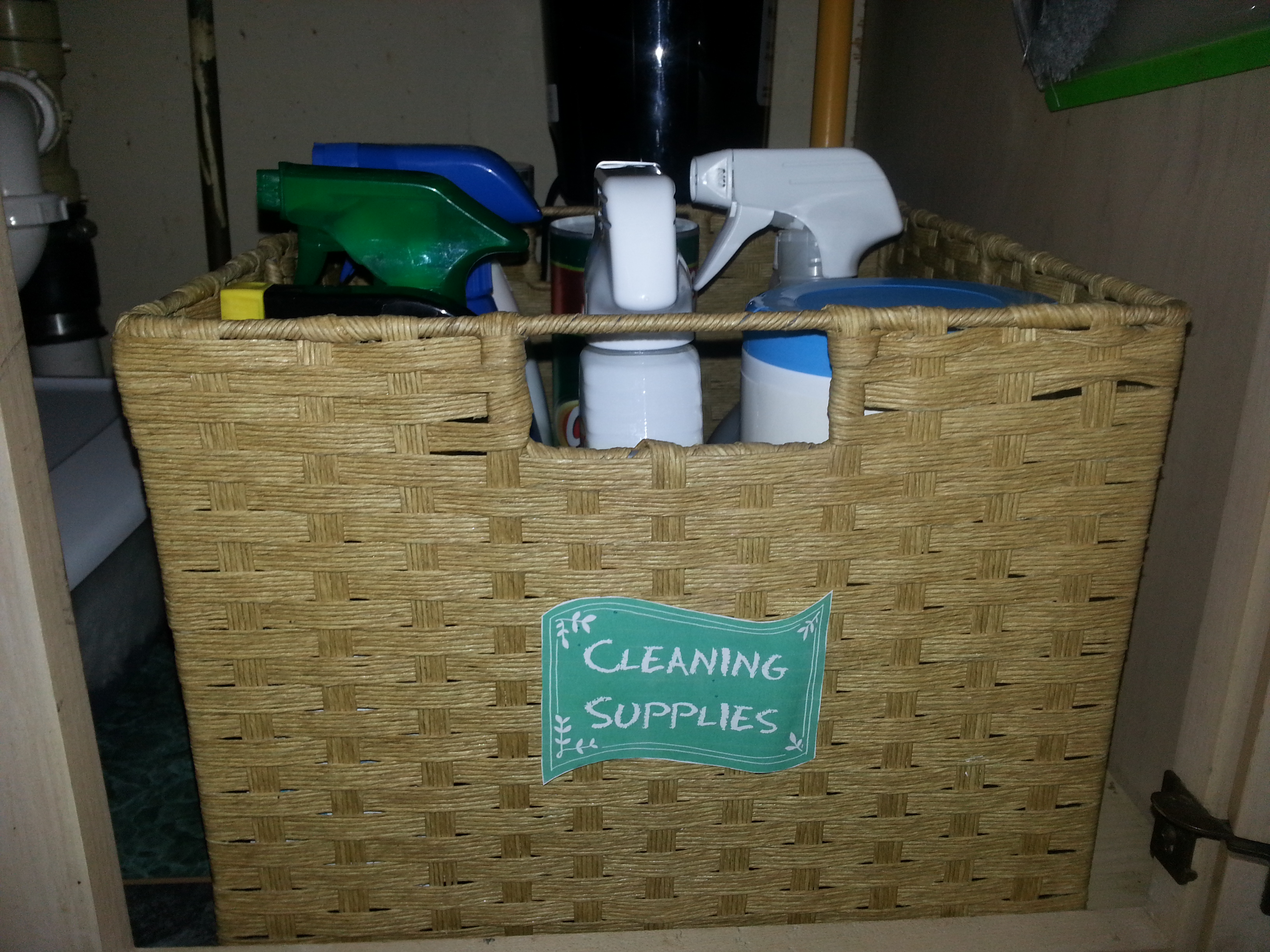 As I was going through my cleaning supplies in my cabinet, there were some supplies I didn’t use very often, so I placed them in the basement. After I removed those cleaning supplies, I had more storage space to work with.