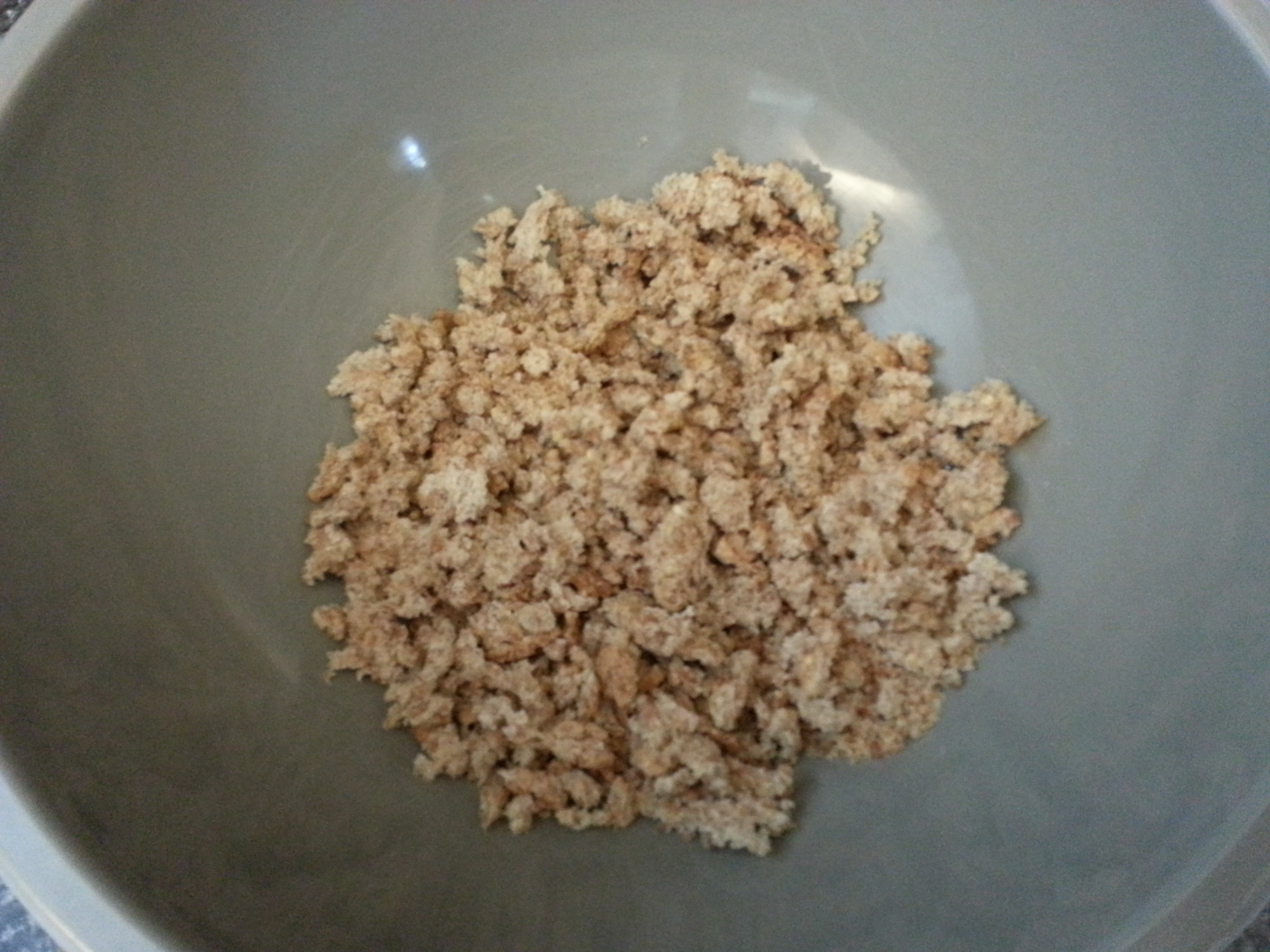 - 2 slices of bread, cubed, toasted, and crushed
