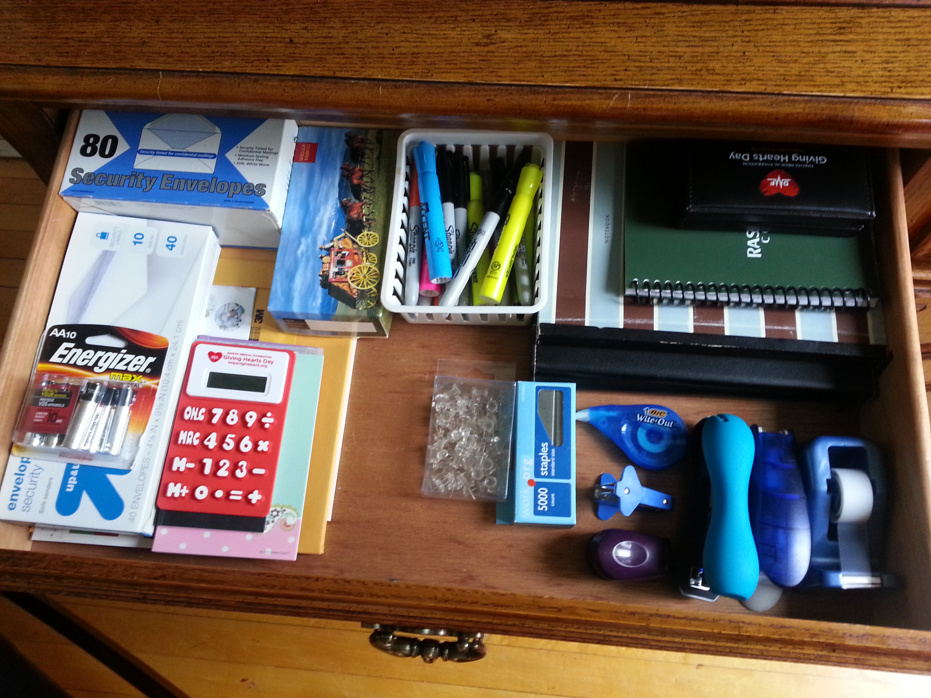 What do you think of my organized hutch? I feel much better that the drawers and cabinets are organized. I still want to add labels to make the hutch little bit more organized. Now I’m on to the next thing to organize.