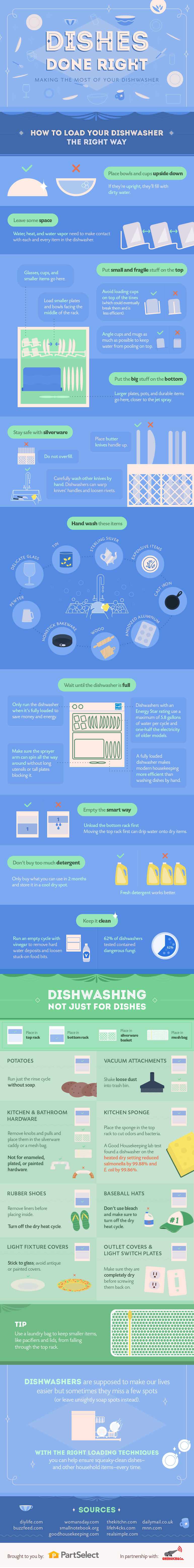 A graphic was created showing tips on loading a dishwasher, what items should be hand washed, and other dishwasher tips. Check out the graphic!