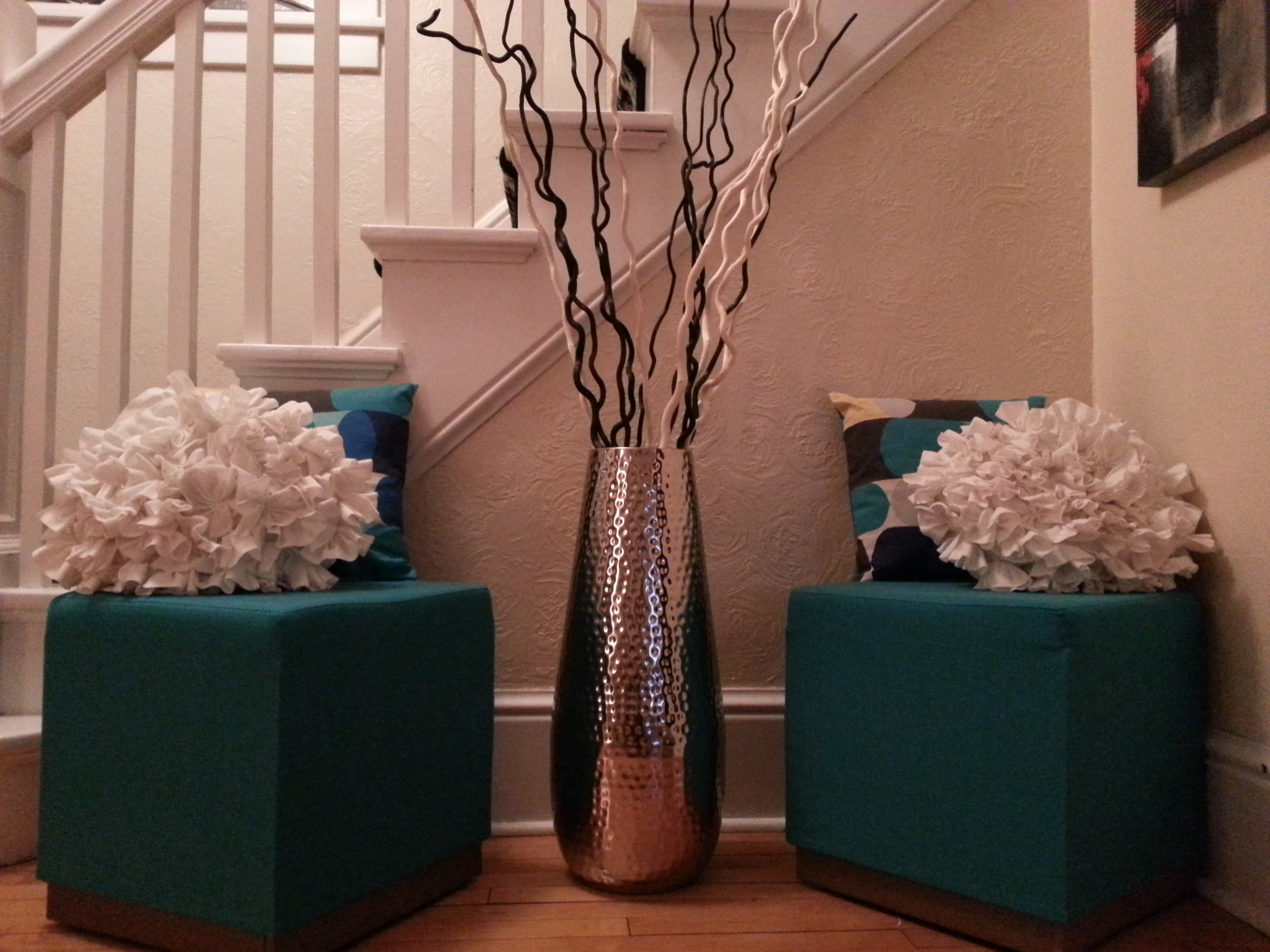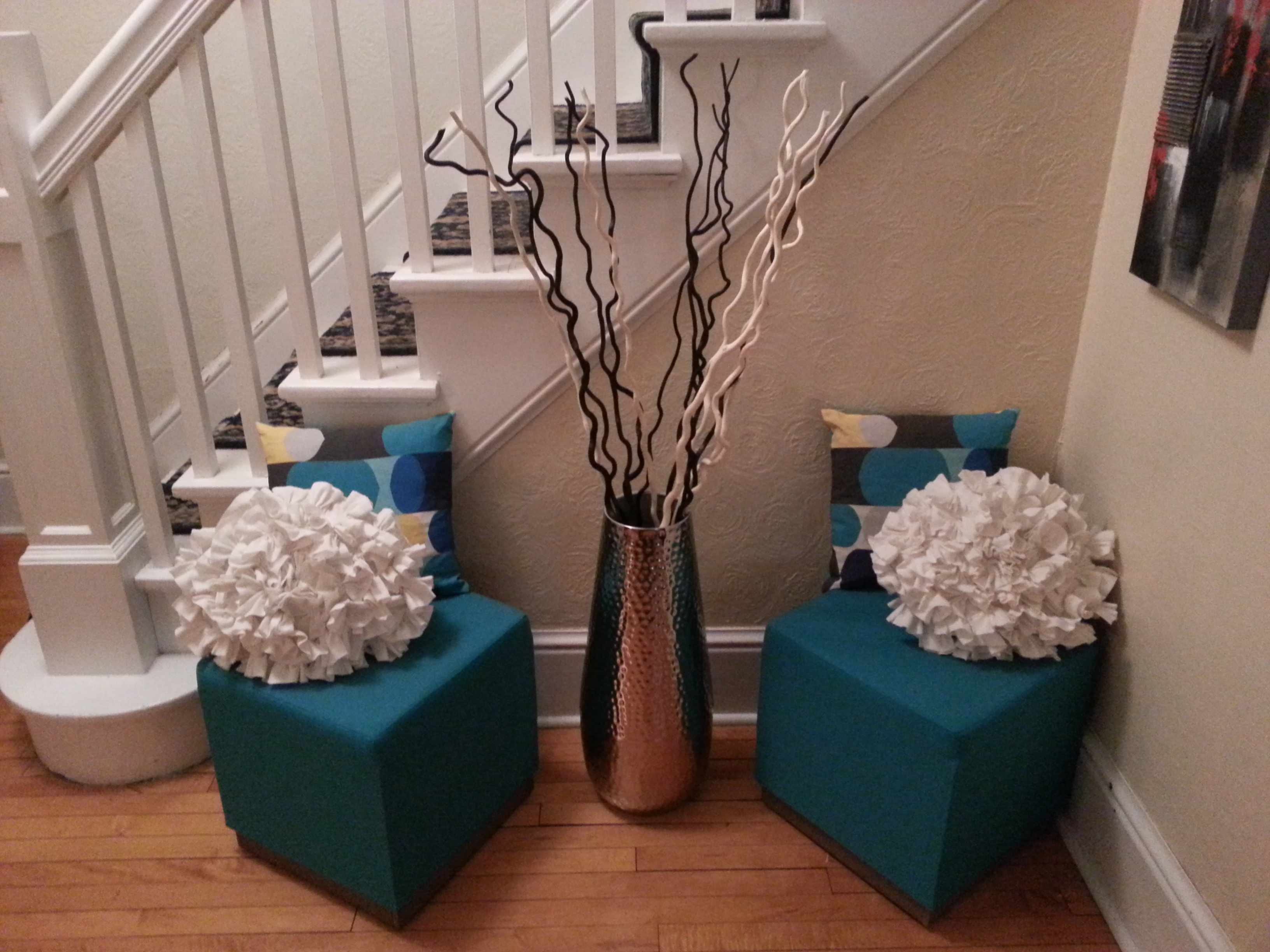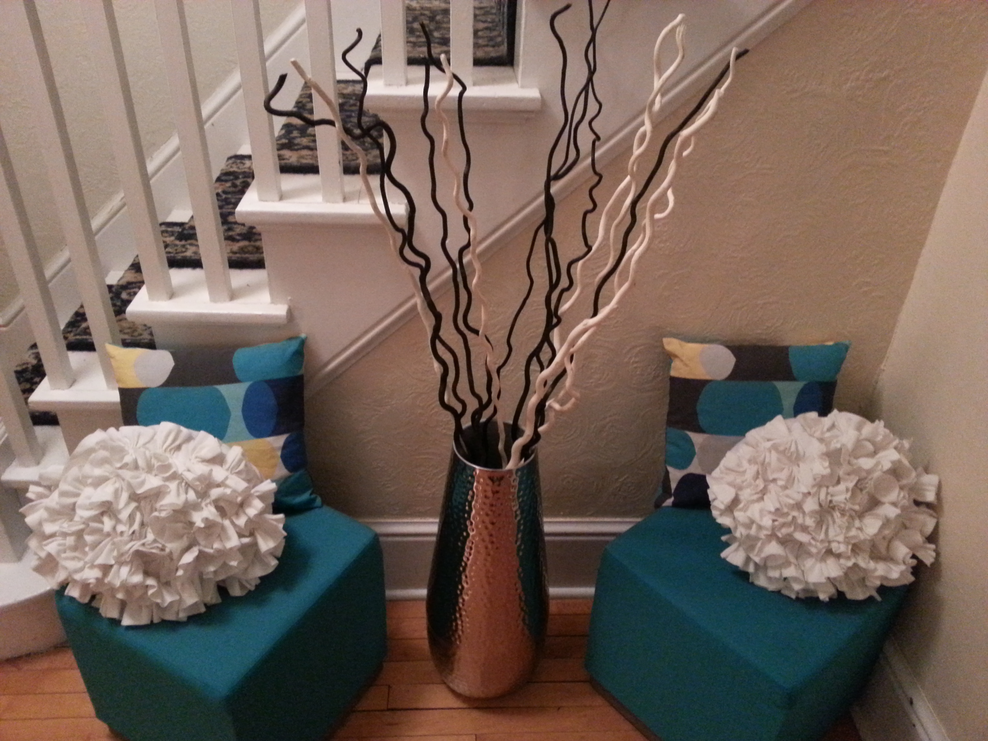 I wanted to make my home look more like Spring, so I created a seating area by my stairs in the living room.