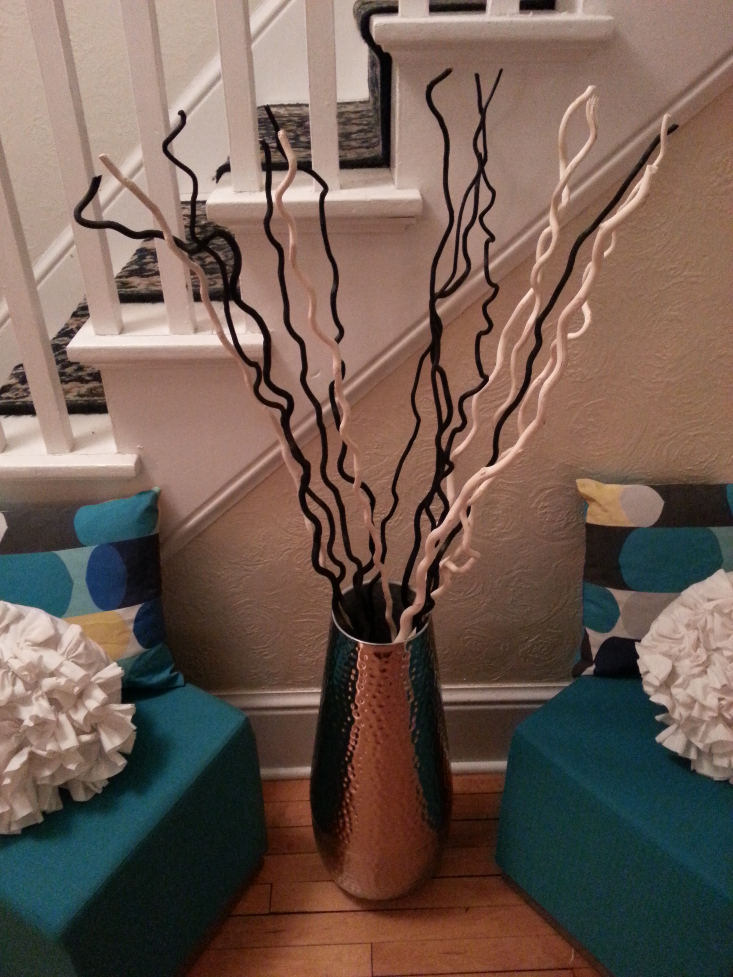 I have wanted a tall vase for my living room for a while and I recently found one at Target. I wanted to find some sticks for the vase, so I looked at Hobby Lobby and found these black and white sticks. Once I put the sticks in the vase, I knew they looked perfect together.