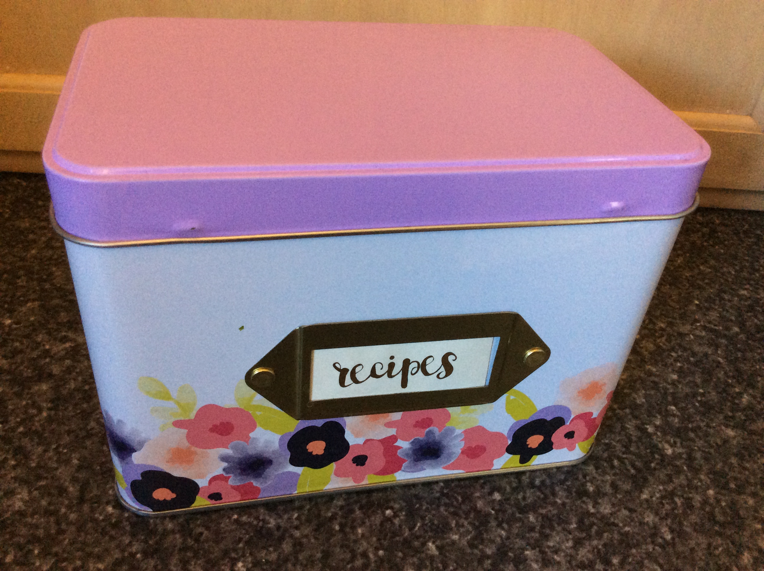 4. Create one location to store your recipes. I bought a recipe container to keep all of my recipes in. I have my recipes in eight different categories. I write out the recipe(s) on a note card while I’m cooking the meal. Before I was writing down the recipes in a small notebook. When I wanted to use a recipe again, I had to look through the notebook to find it. Not only do I now have one location for my recipes, I have a cute container to display in my kitchen.