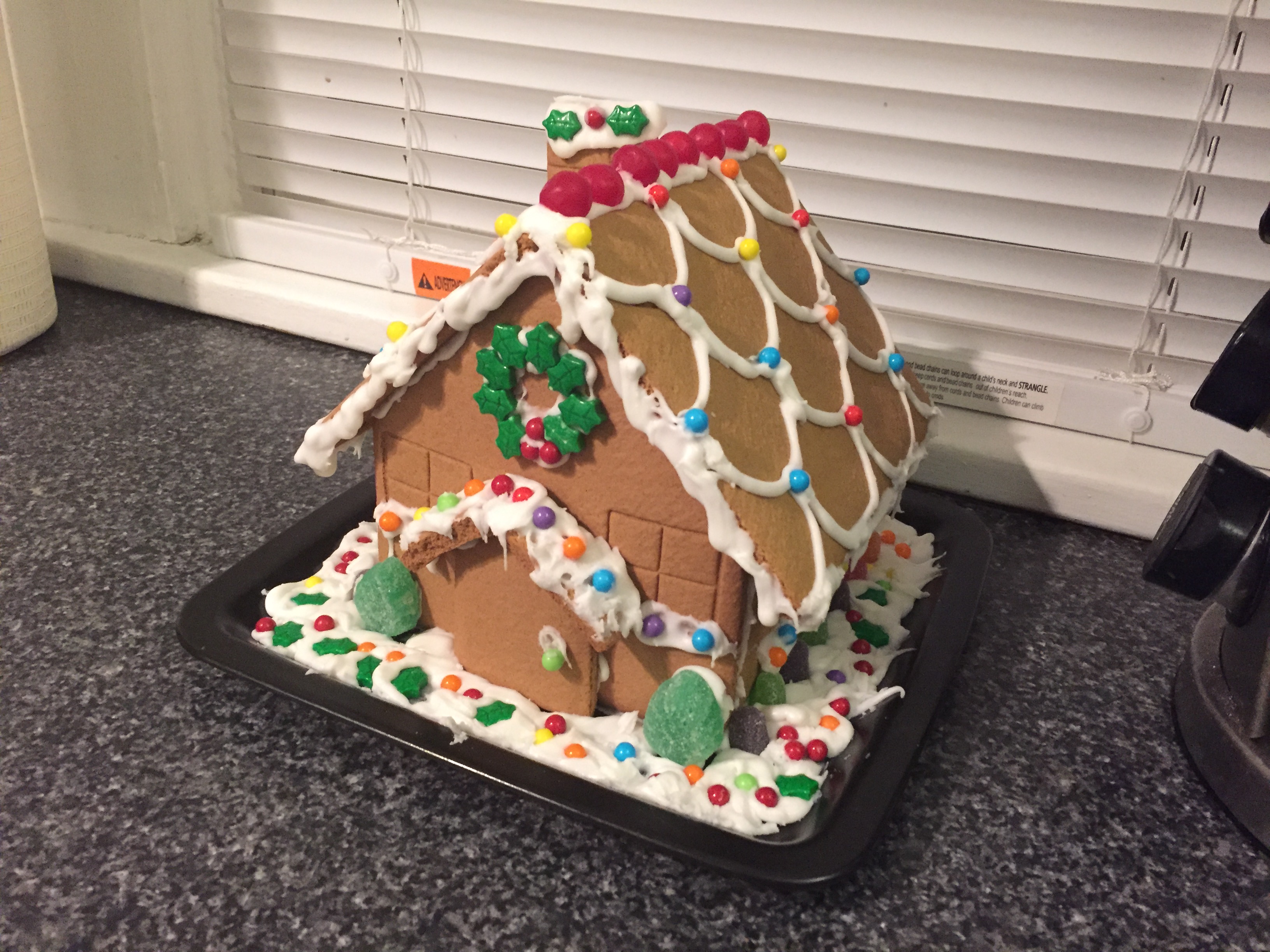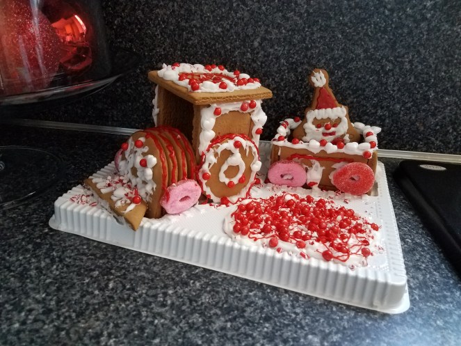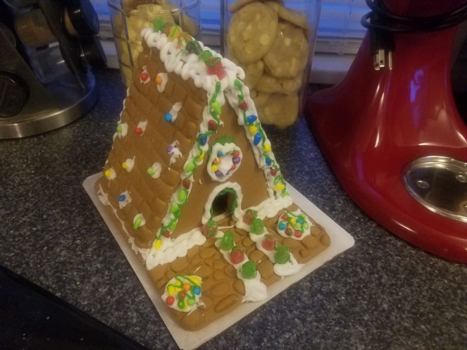 2. Gingerbread Houses. We’ve made houses for the past three years too. We’ve made a regular house, train, and a triangle house. My girls get excited to make a gingerbread house each year. We choose a different kit each year. My girls love tasting some of the frosting and sampling several pieces of candy.