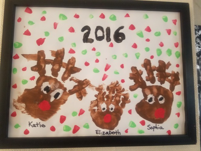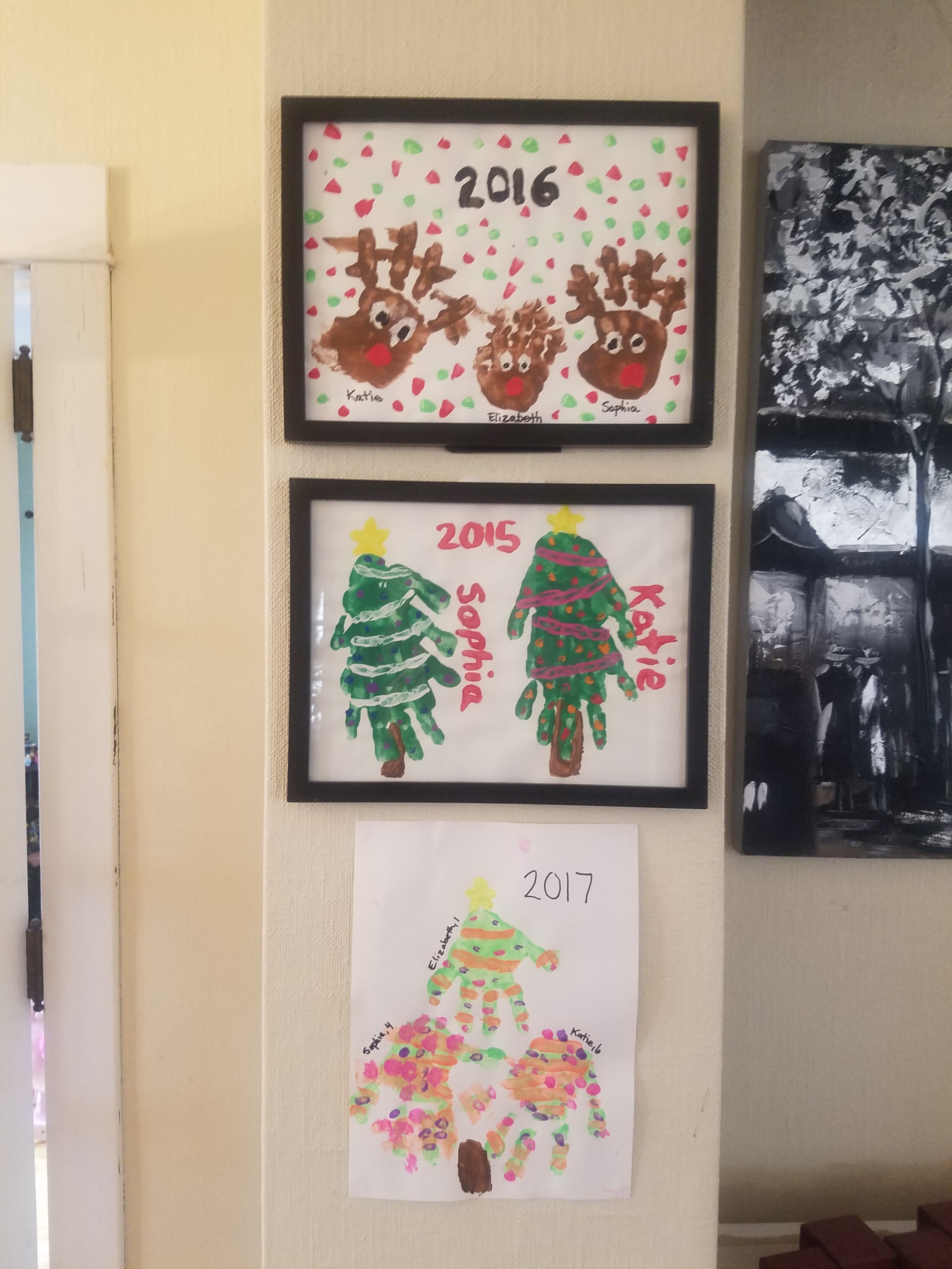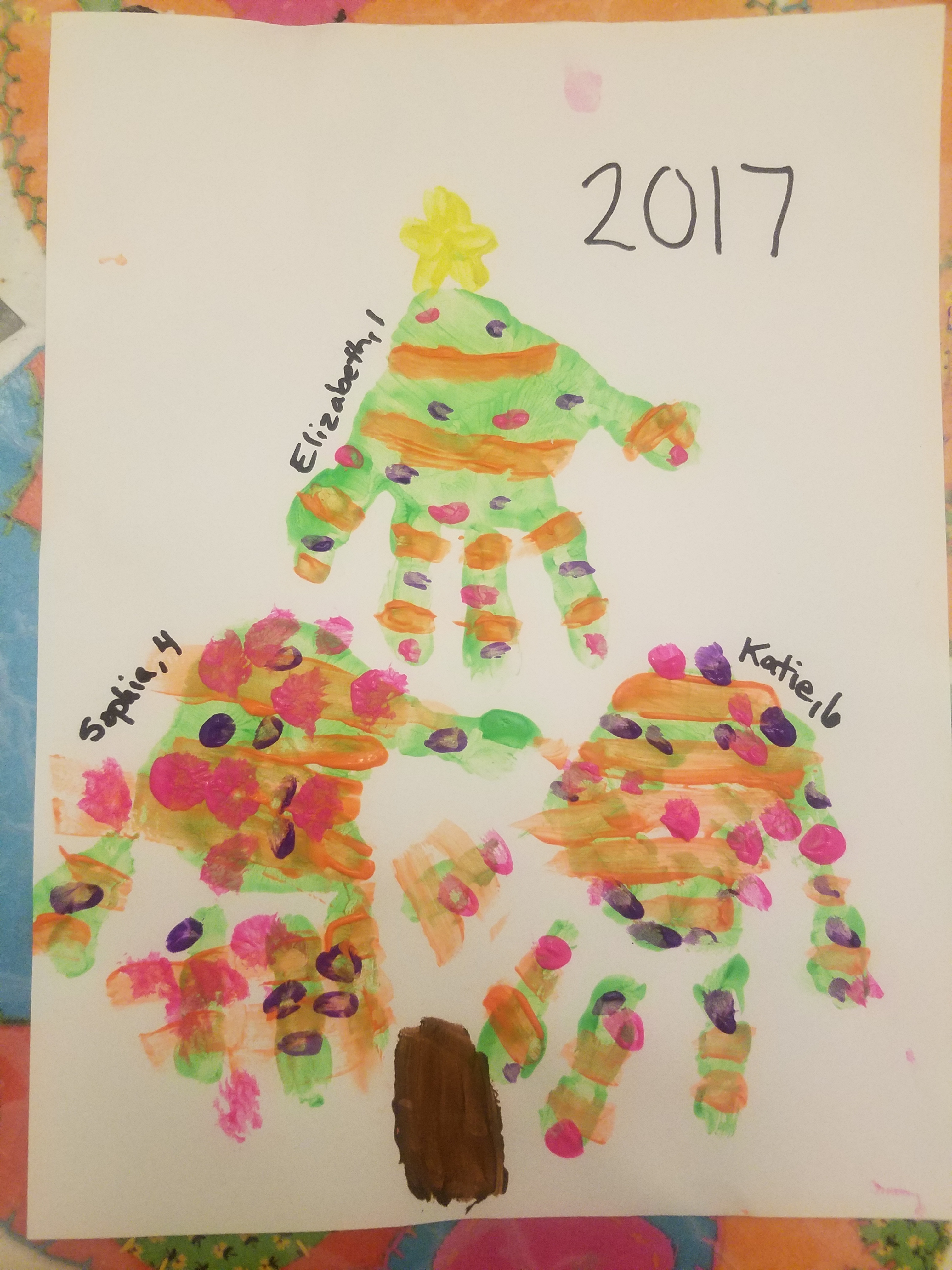 1. Handprint Art. We have made paintings for the past three years. Every season/holiday we paint different handprint art. We’ve made trees, reindeer, and one large tree for Christmas. I love seeing how much my girls’ handprints have grown over the years.