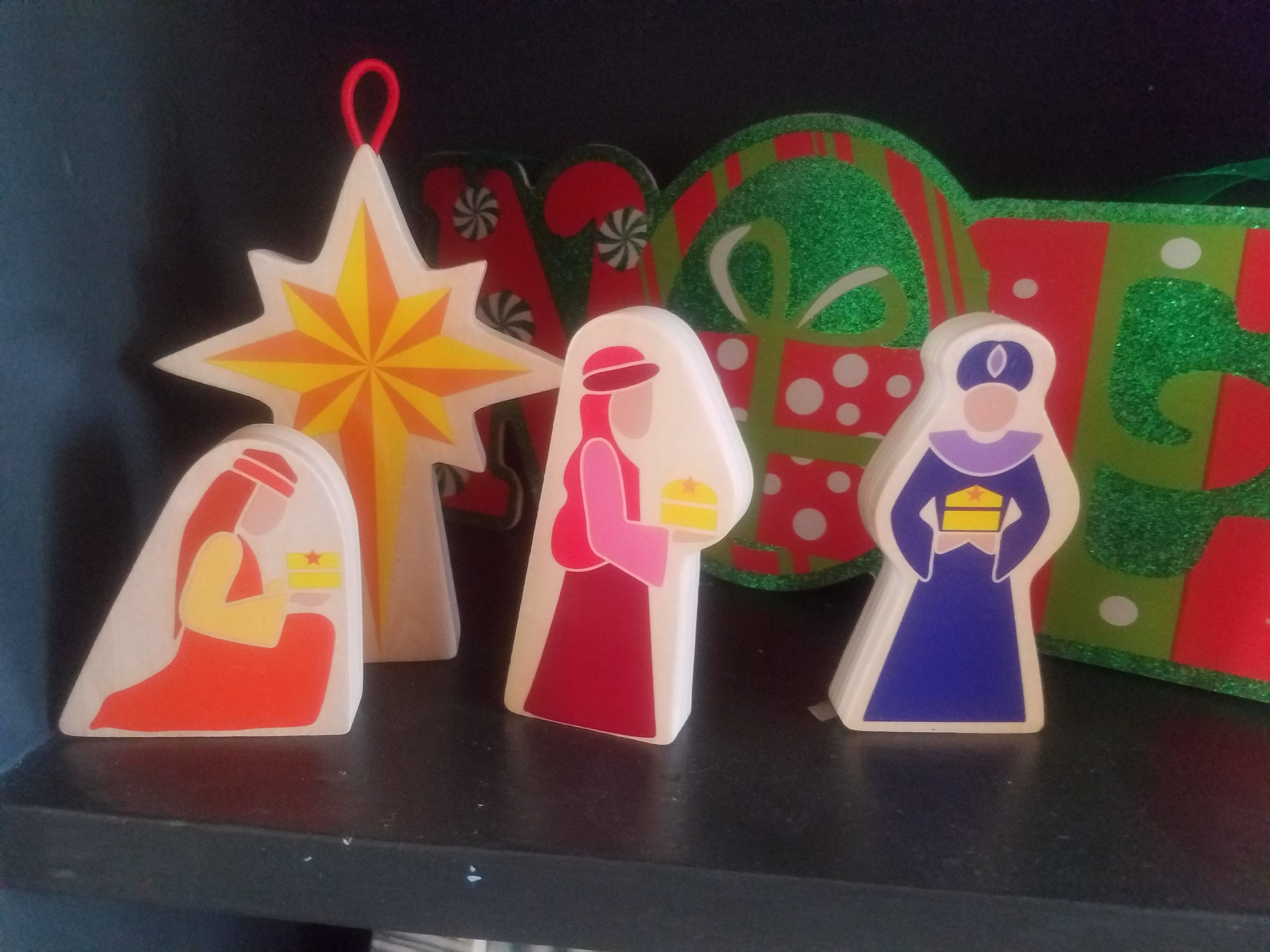 4. Christmas Star from Afar. We started this tradition this year. This activity comes with a wooden nativity set and stable. It also comes with a book telling a story about the Christmas star. For the activity, my husband and I hide the wooden star and my girls find the star and place the wise men next to the star. We do this every day in December until Christmas when the star is by the stable. You can see my post on the Christmas Star from Afar here to read more information on the activity.
