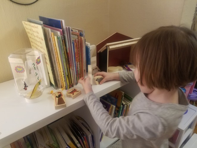 My girls love to play with the wooden pieces. They pretend the angel is talking to the shepard. Elizabeth’s favorite pieces are the sheep. They also love to make up stories with the character pieces and add in other toys that interact with the pieces.