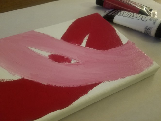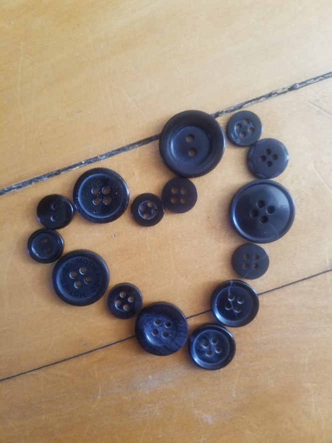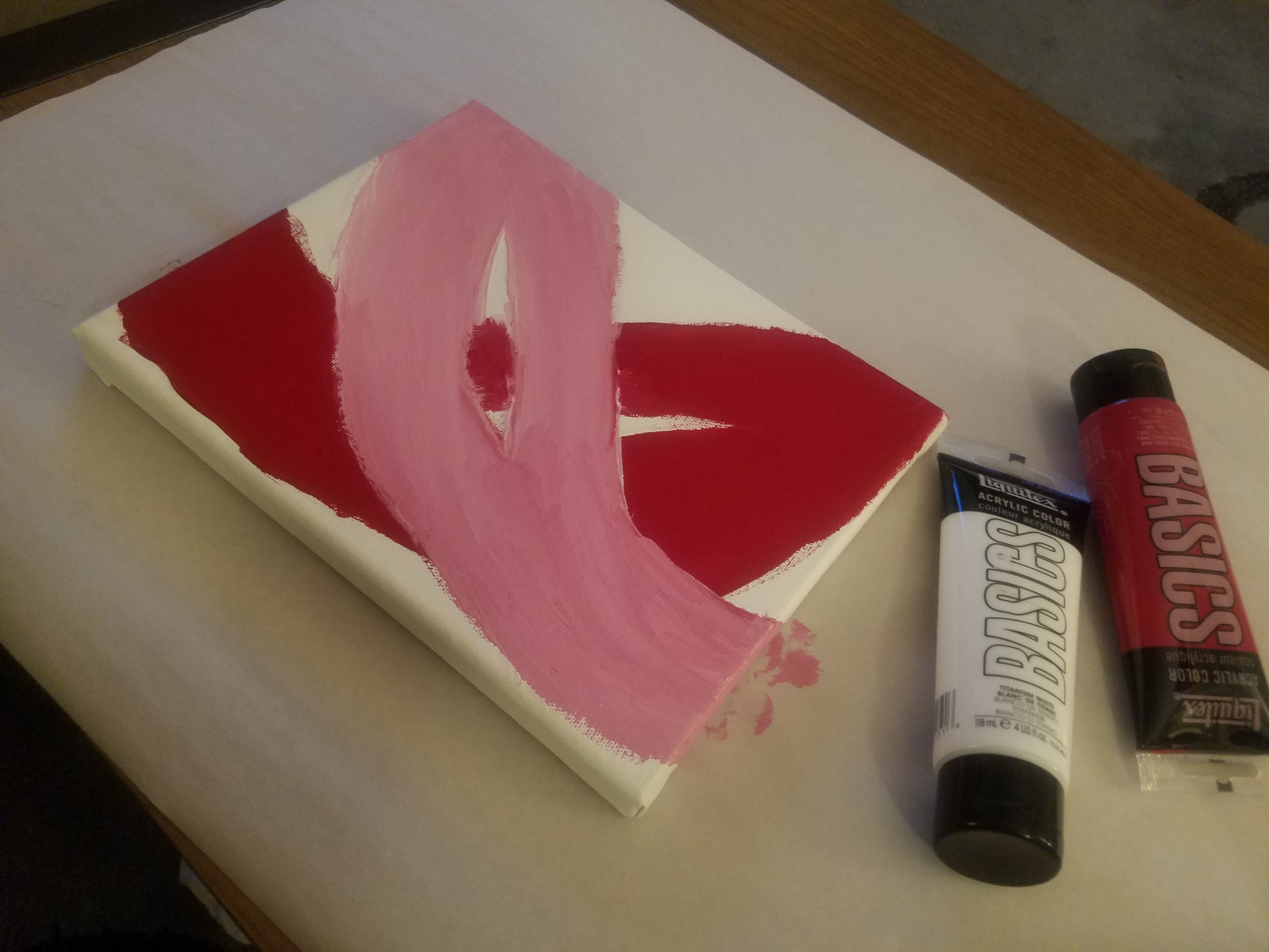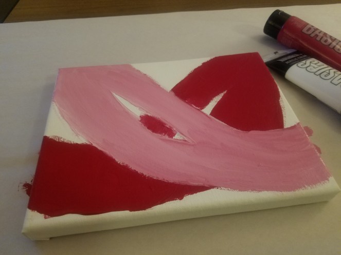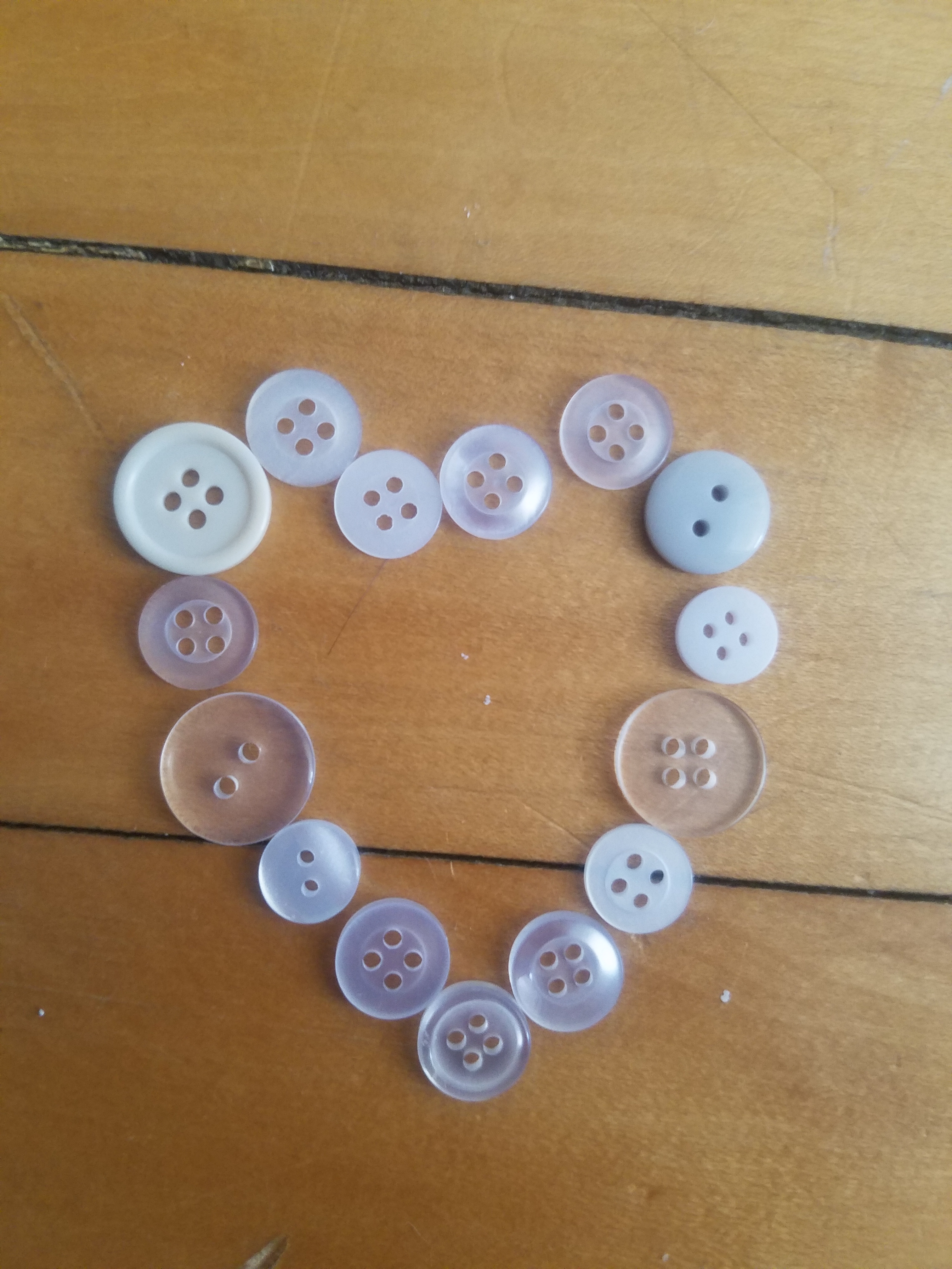 My plan was to create a button art by making hearts with buttons. I was going to paint a small canvas with red and white paint (make pink with the white). Then after it dried, I was going to add the buttons. I even make hearts ahead of time and took pictures of them, so I would know where to put the buttons to form the hearts.