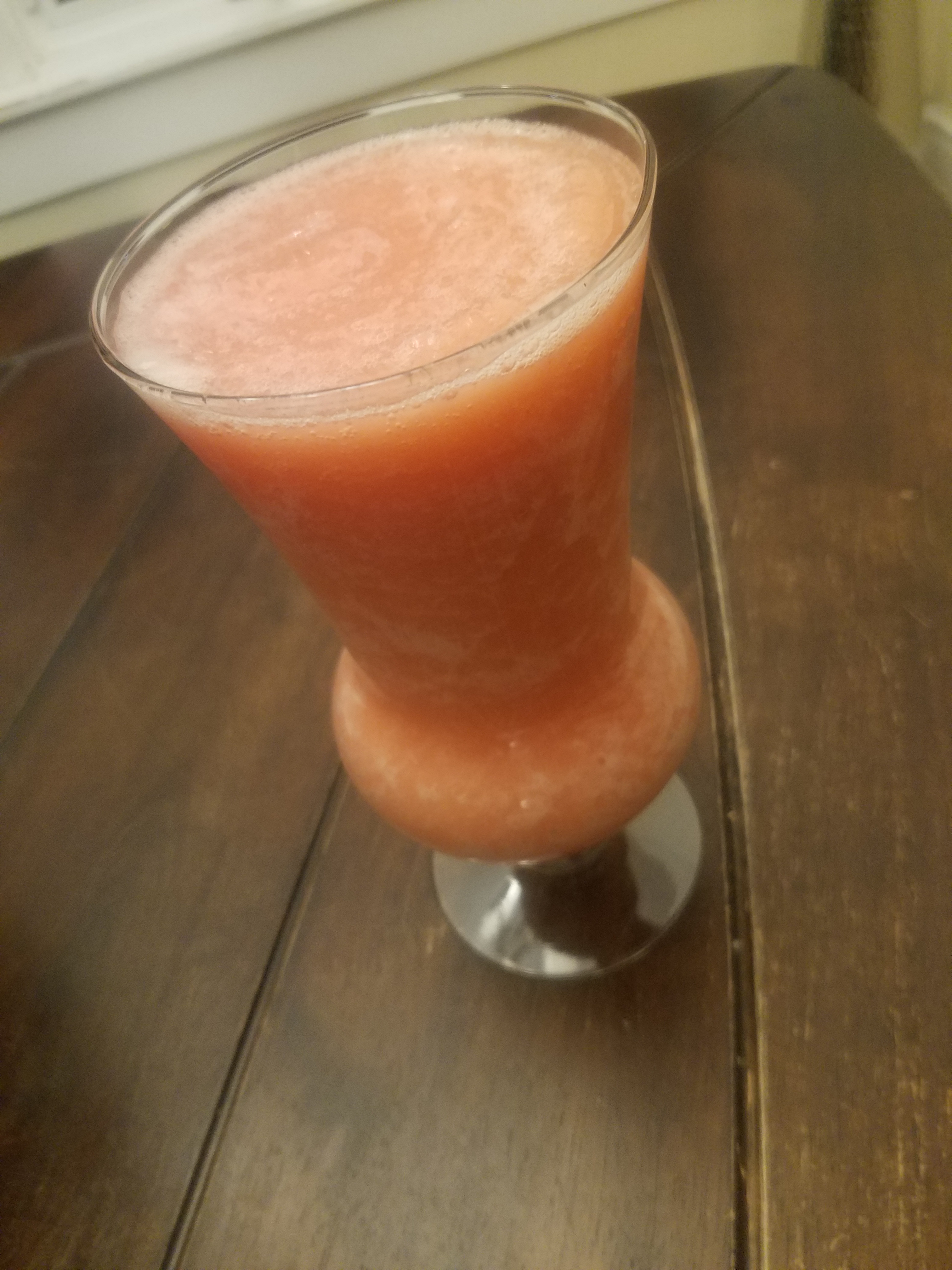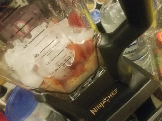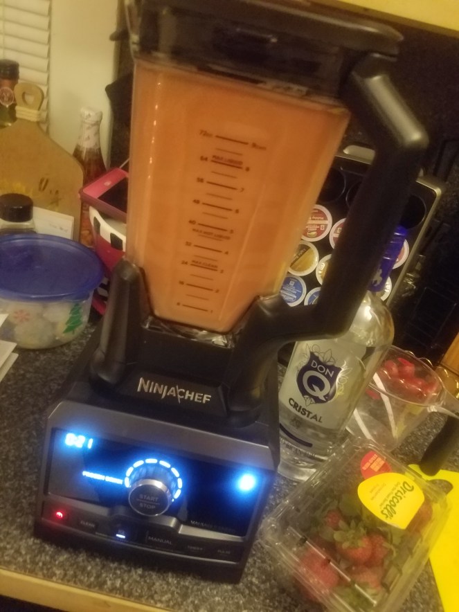 I thought it would be fun to make strawberry daquiris for my husband and I. I followed the recipe from my Ninja Chef recipe book. I added more ice than directed to get the drink to the consistency that I wanted. I thought the strawberry daquiri tasted really good. The only thing I would do is lessen the amount of rum in the drink.