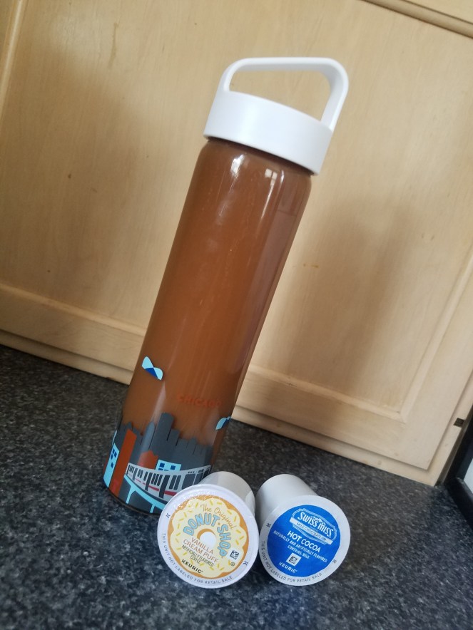 1. Italian Coffee. This coffee is mixed with coffee and hot chocolate. I made the Italian coffee this morning, although I didn’t add any whipped cream. I made a coffee with a Donut Shop Vanilla Cream Puff k-pod and a Swiss Miss Hot Cocoa k-pod in my Keurig machine. The coffee had a very smooth taste and reminded me of a mocha. If I let my almost 5 year old, Sophia, drink this (but I’m not), she would love it since she loves hot chocolate so much. She’s already planning on drinking coffee when she’s older. You can find the recipe for the Italian Coffee on Nellie Bellie’s website.