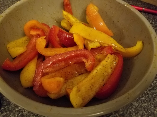 - 12 sweet peppers, halved (or 3 peppers, cut in 1/2 inch slices)