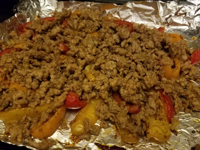 - While the peppers are baking, prepare the ground pork.