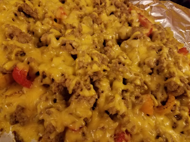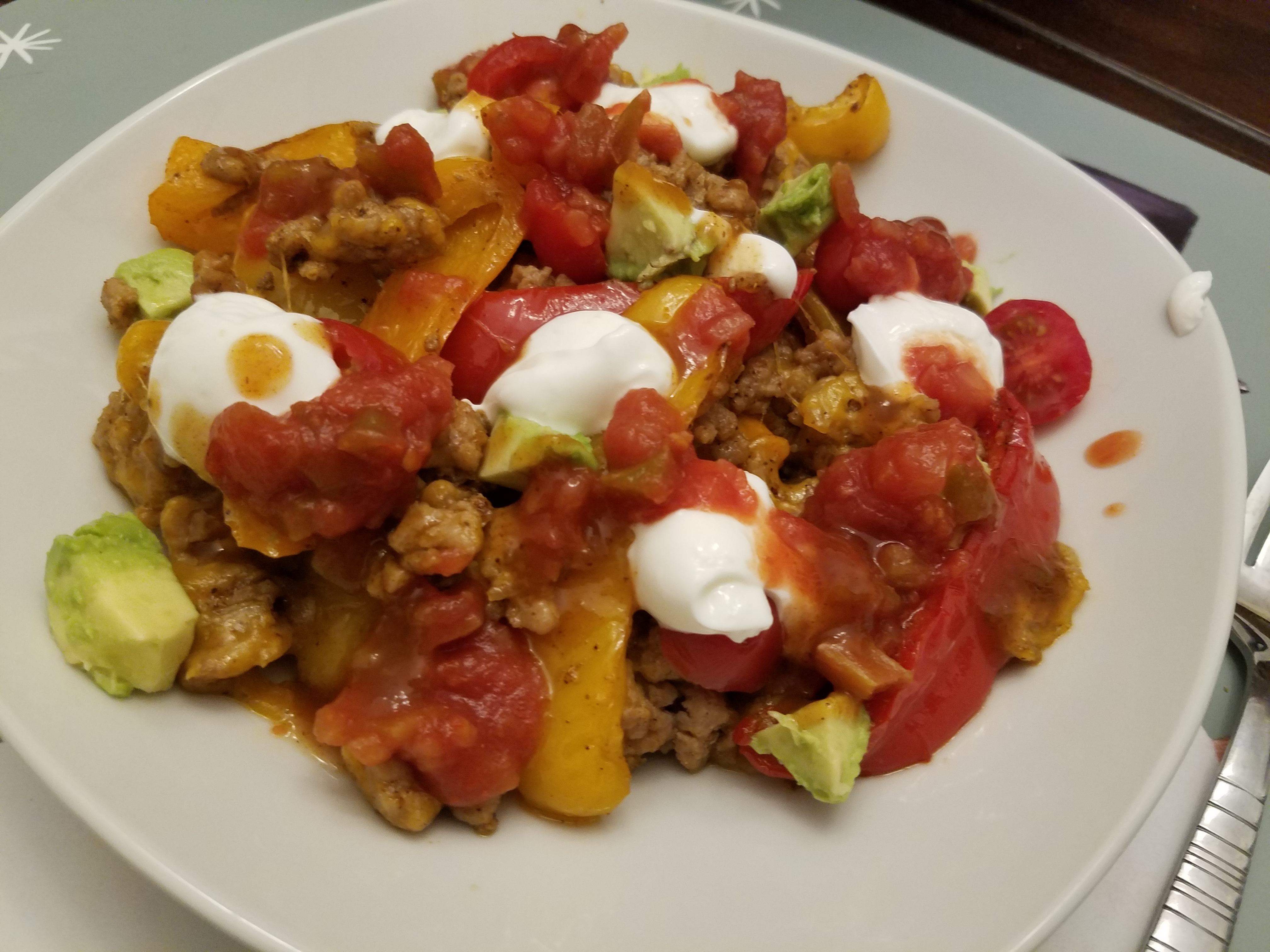 One of my favorite nachos are sweet pepper nachos. You can bake them in your oven or in a toaster oven. I either use halved sweet peppers or thick sliced peppers.