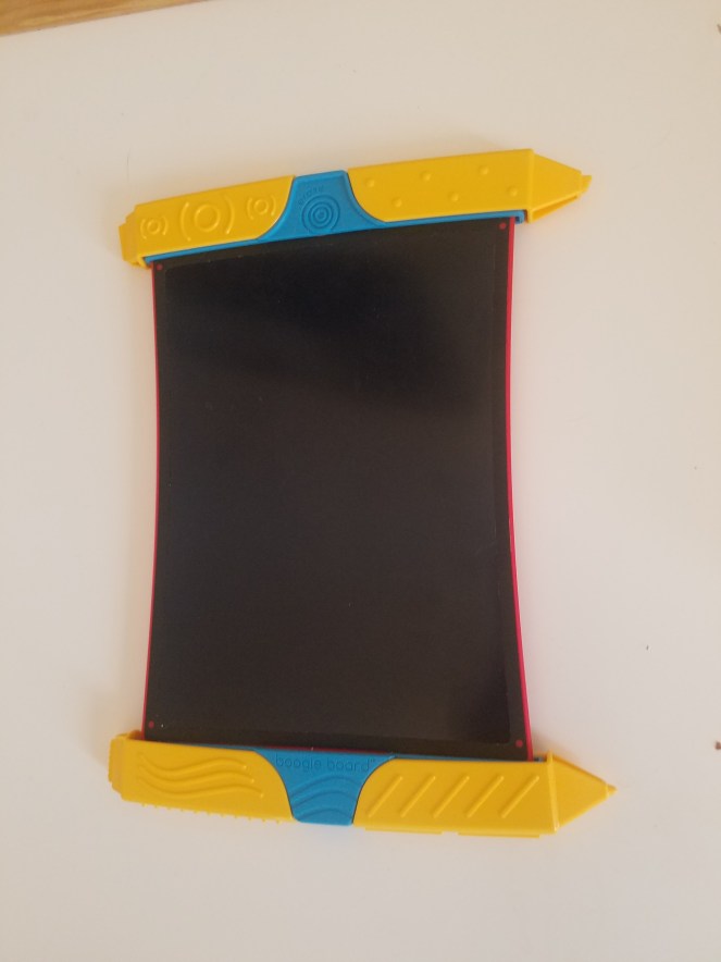 There are two different variations of the Boogie Board that my girls own – Boogie Board Scribble n’ Play and Boogie Board Play n’ Trace.