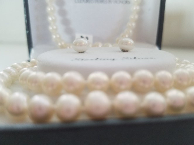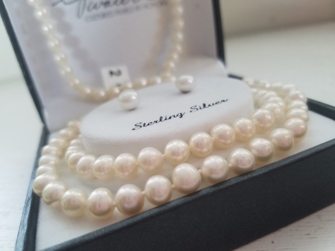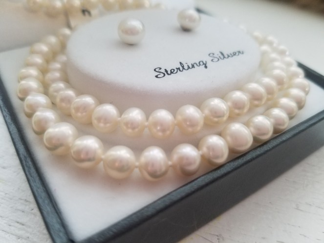 For Valentine’s Day, my husband got me just that – a pearl jewelry set, which included a necklace, bracelet, and earrings. My husband bought them at Kohl’s for a great deal. When I opened my present, I was so excited to wear the pearls. They looked so beautiful!