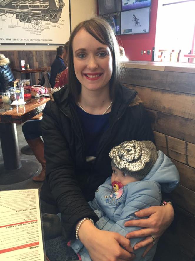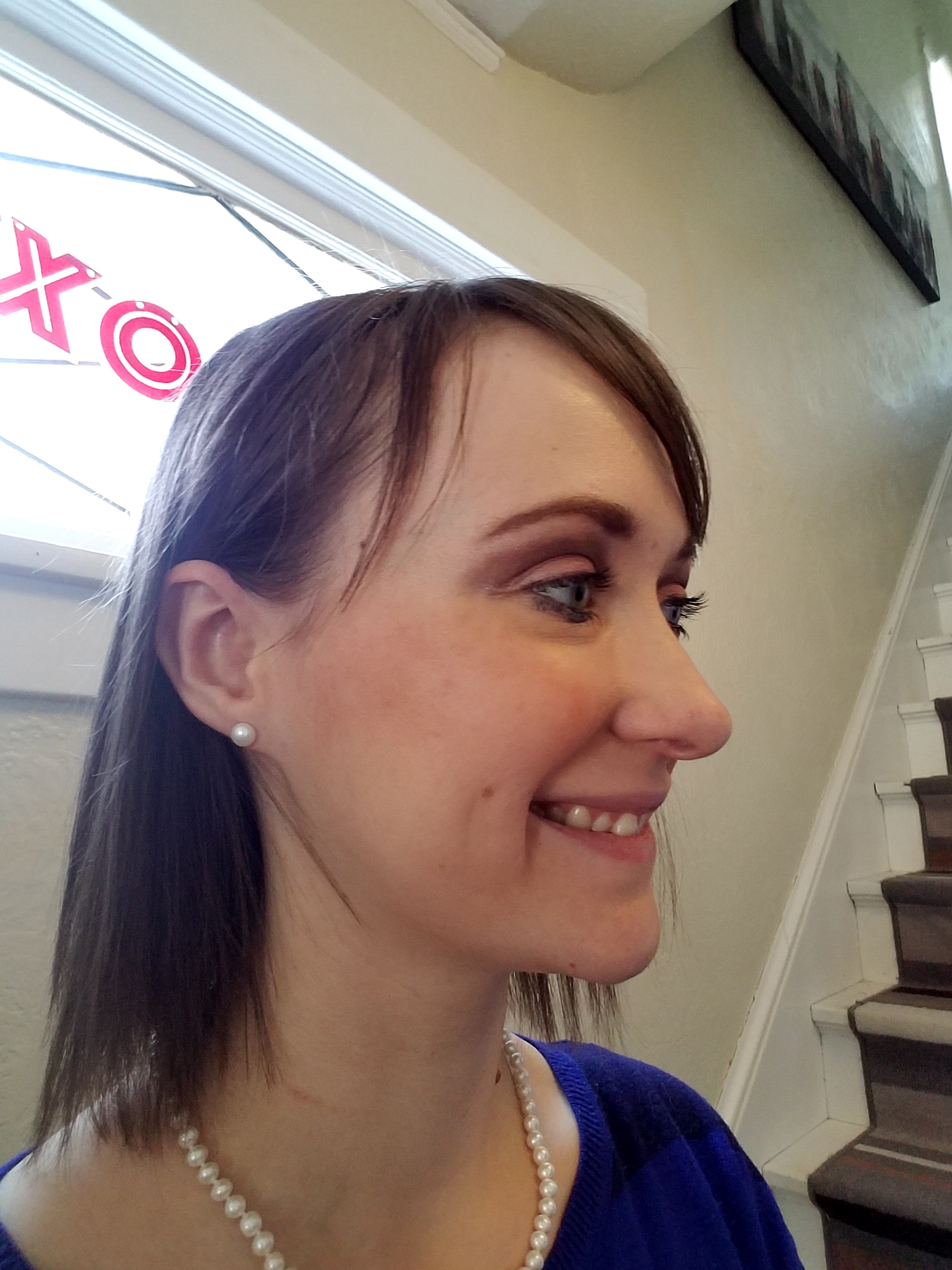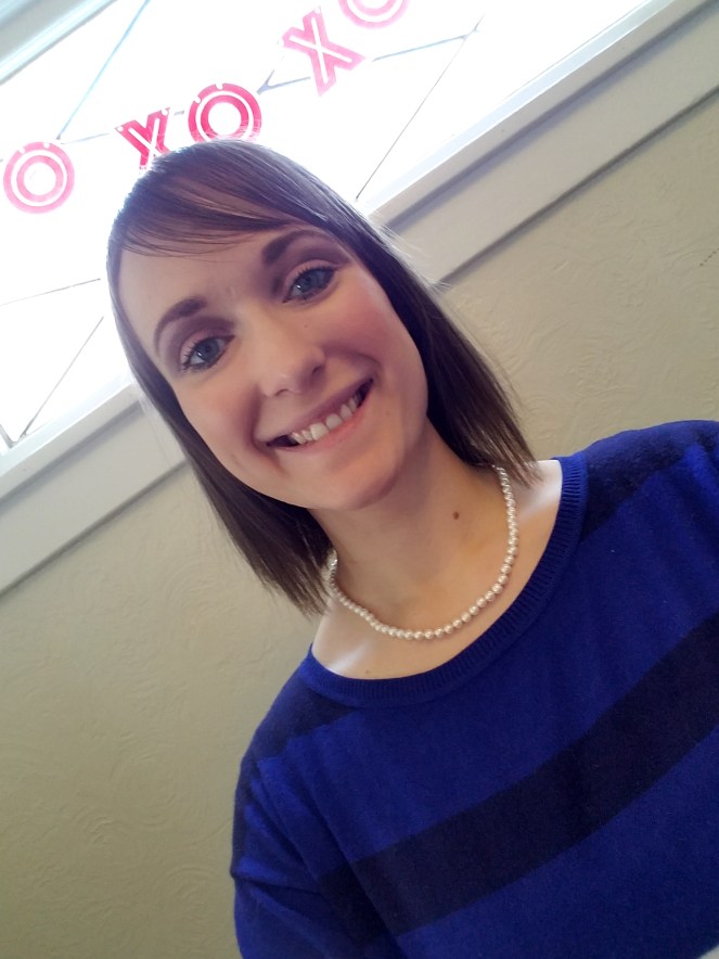 Below is me wearing the pearl jewelry. I actually got the pearls early and I wore them the day before Valentine’s Day. My husband and I went for a lunch date with our youngest daughter Elizabeth (who was asleep most of the time) while Katie and Sophia were at school.