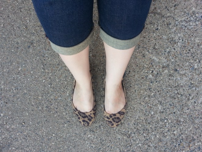 I used to own a pair of leopard flats, but they got worn out on one side. Below is what they looked like. They had a cool belt buckle on the side.