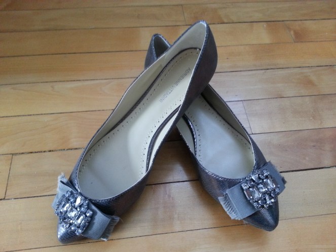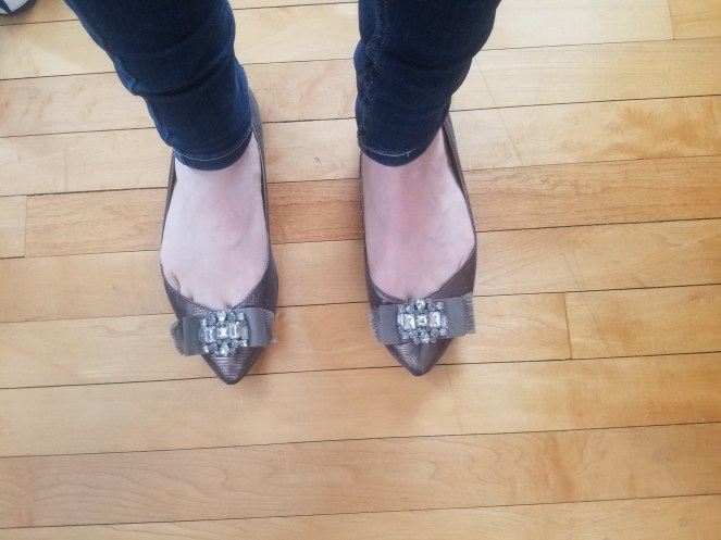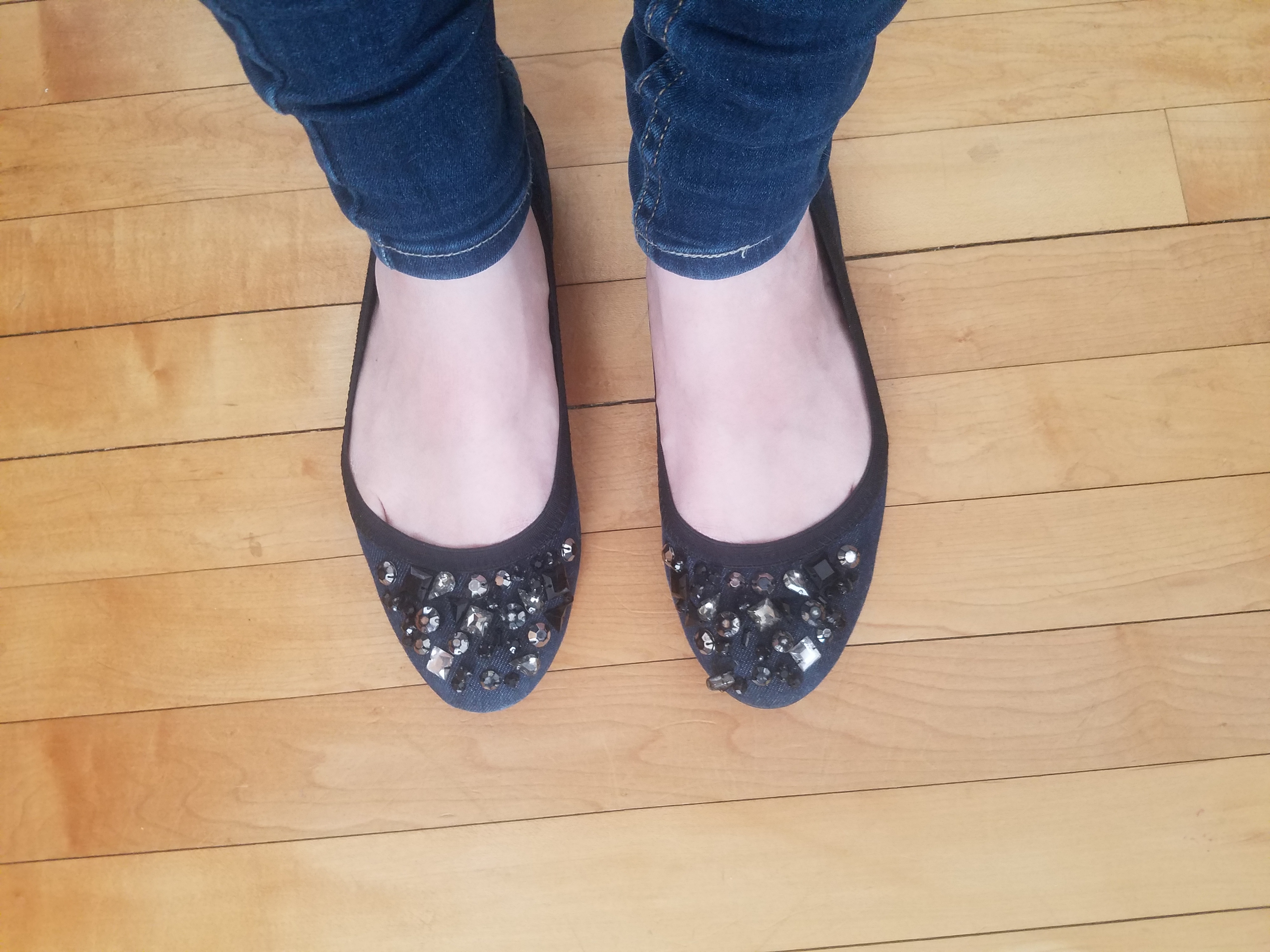 Another favorite pair of flats I own are my silver with jewels and bows that I bought at TJ Maxx. I love how these flats can dress up any outfit.