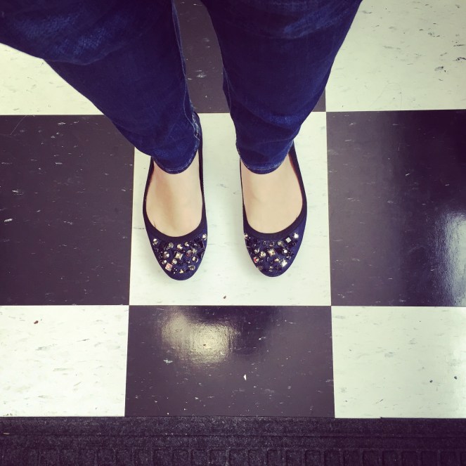 My blue flats with jewels are the most comfortable flats ever. They are designed by Vera Wang. My ankle usually gets rubbed by new shoes when I first wear them, but I didn’t with these. I found them at Kohl’s couple year ago. You can still find the exact pair of flats at Kohl’s website and in stores.