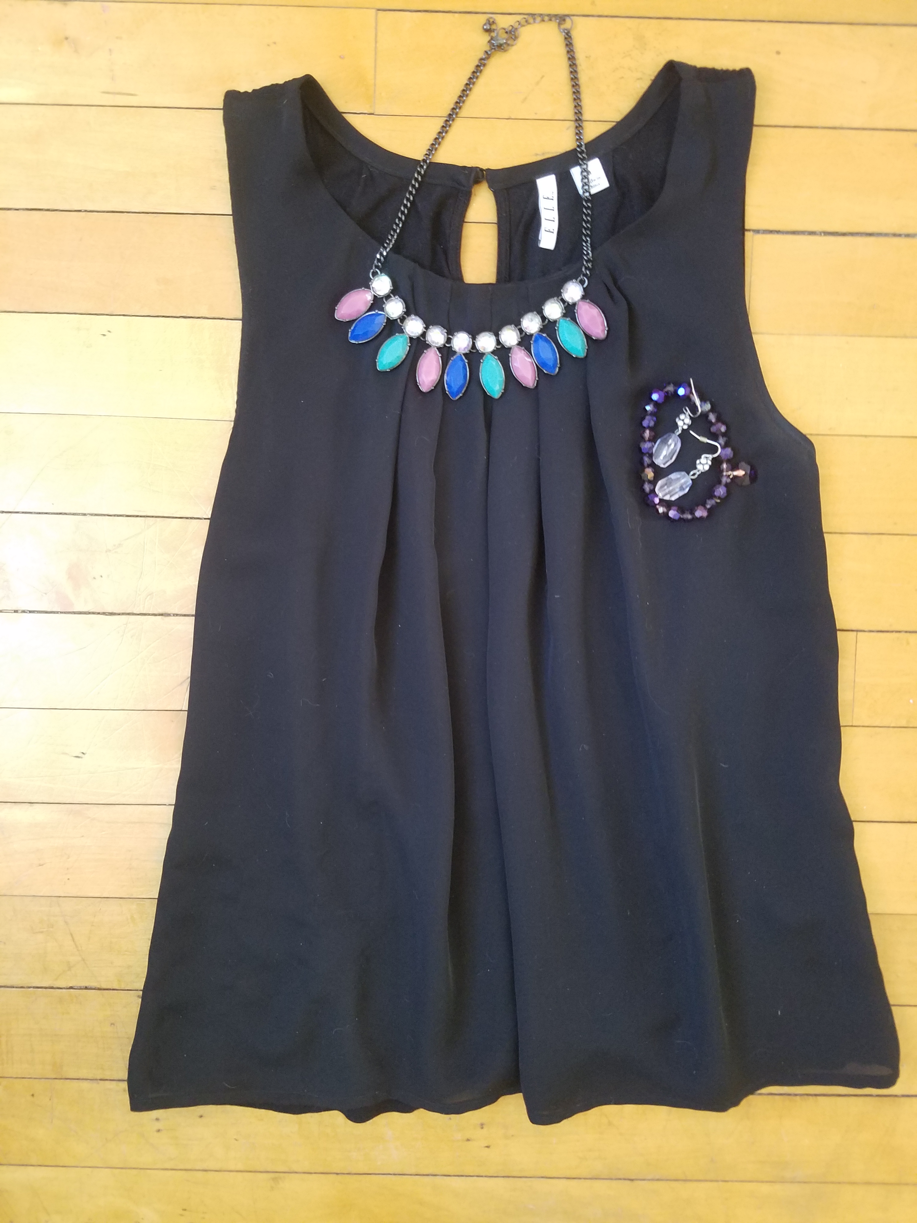 I wore this black blouse last week with a black and tan patterned cardigan from TJ Maxx. I paired the top and cardigan with my black necklace and black earrings. I wanted to go for more of a classic look with the black jewelry with the black blouse.