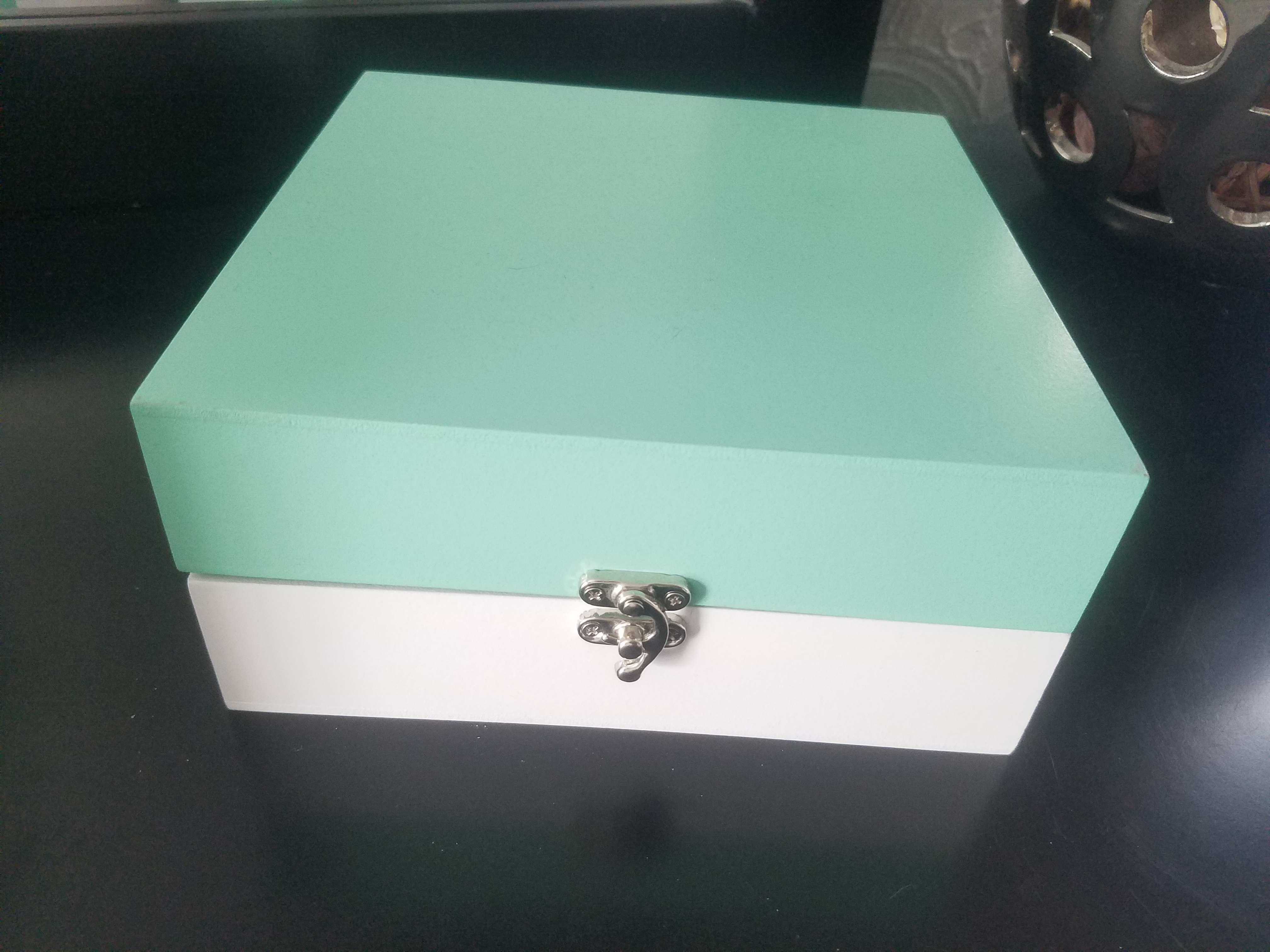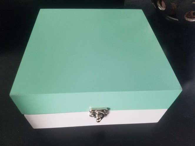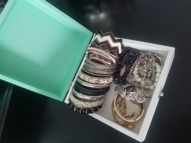 When I was at Target, I found this smaller mint and white box. I knew it would be perfect to store my bracelets. Plus it matched the mint jewelry box that I already had.