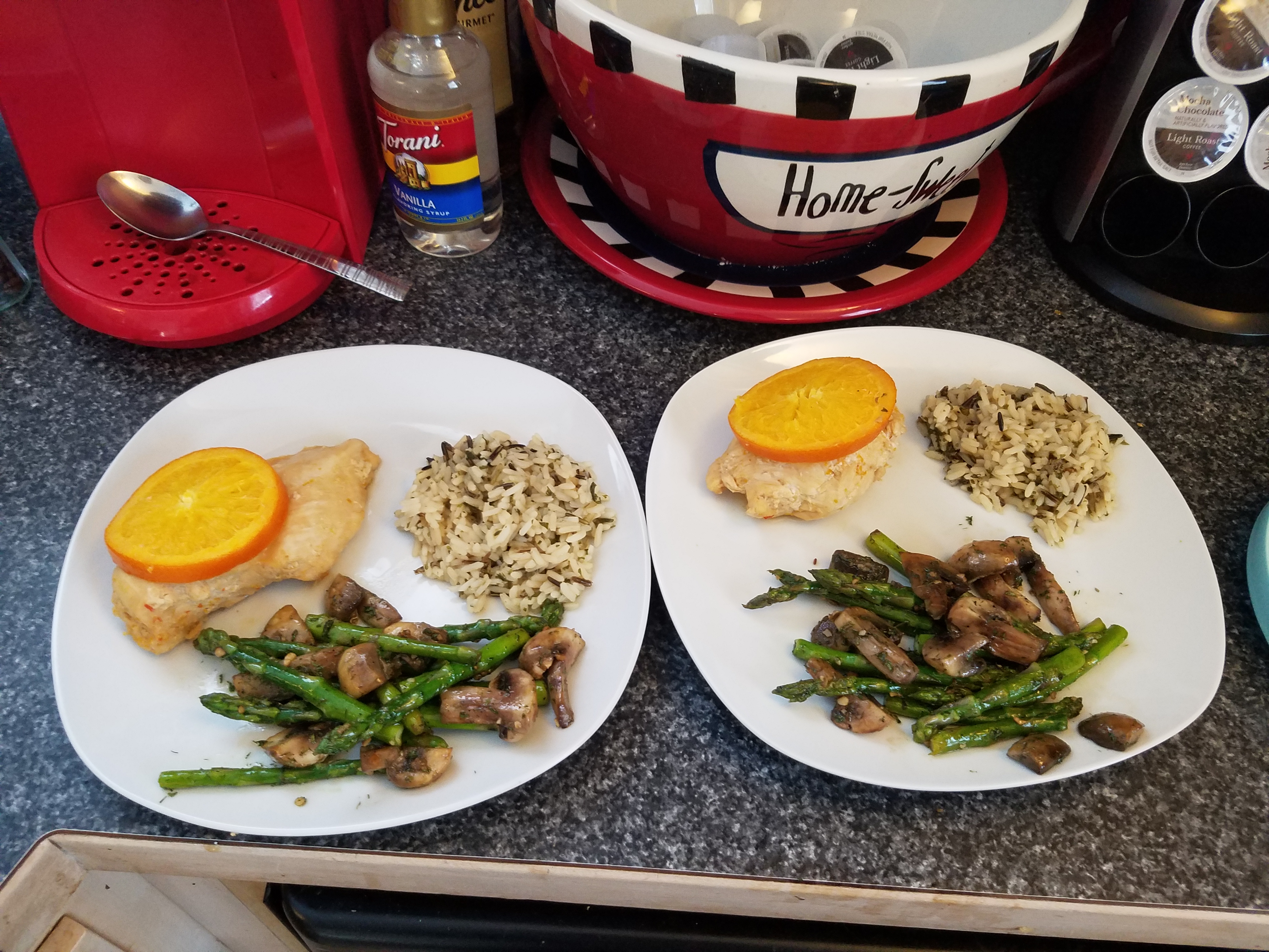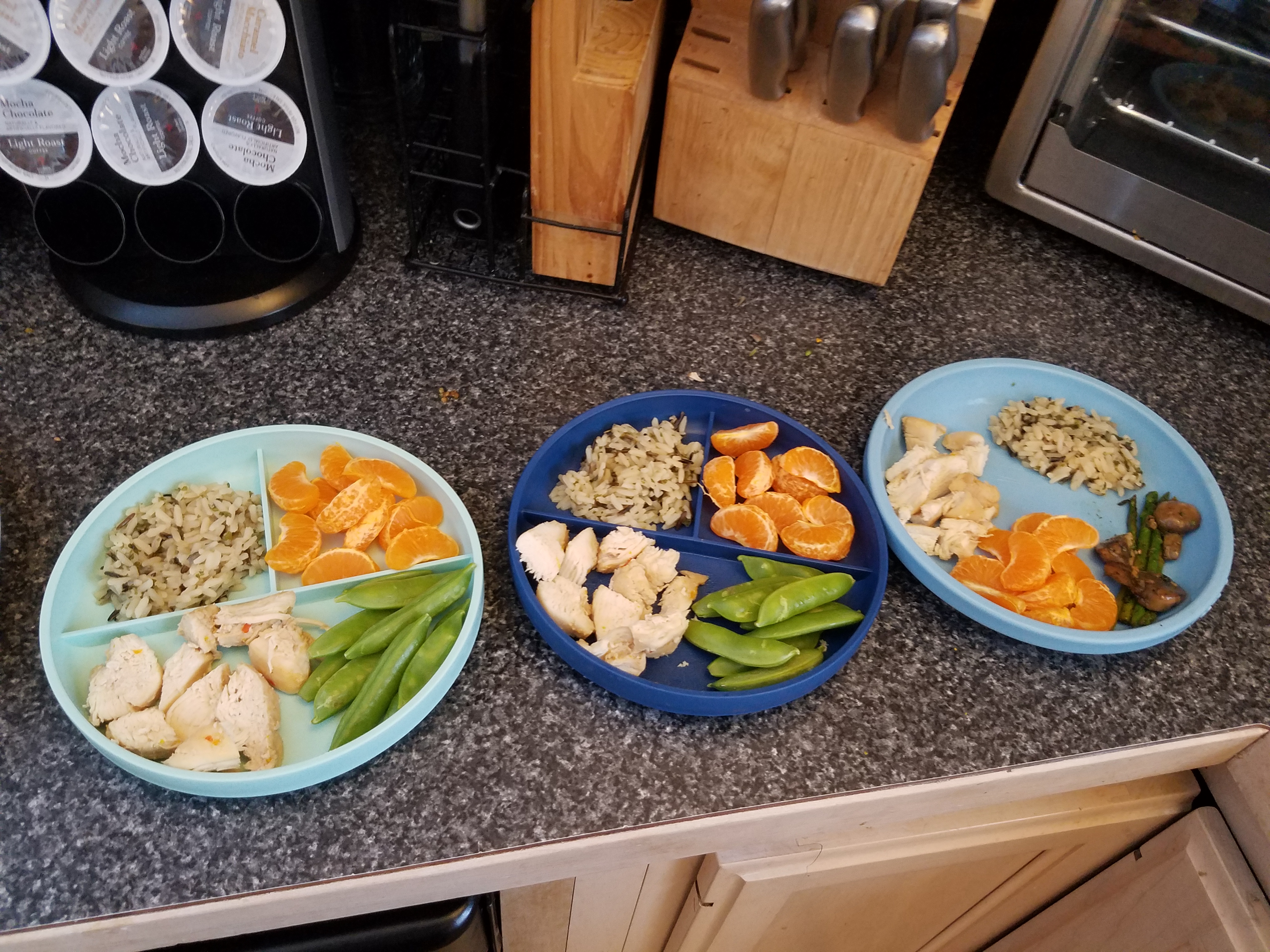 1. Use the ingredients in a meal in the same or similar way. If I’m making a chicken stir fry, I’ll cook my girls chicken on the side, along with a vegetable, such as raw carrots or sugar snap peas. Plus I’ll add a third item, such as fruit, nuts, chips, etc. It makes preparing dinner much easier. In the example below, I made orange chicken, which I gave them. Instead of adding the cooked orange on their chicken, I gave my girls clementine oranges.