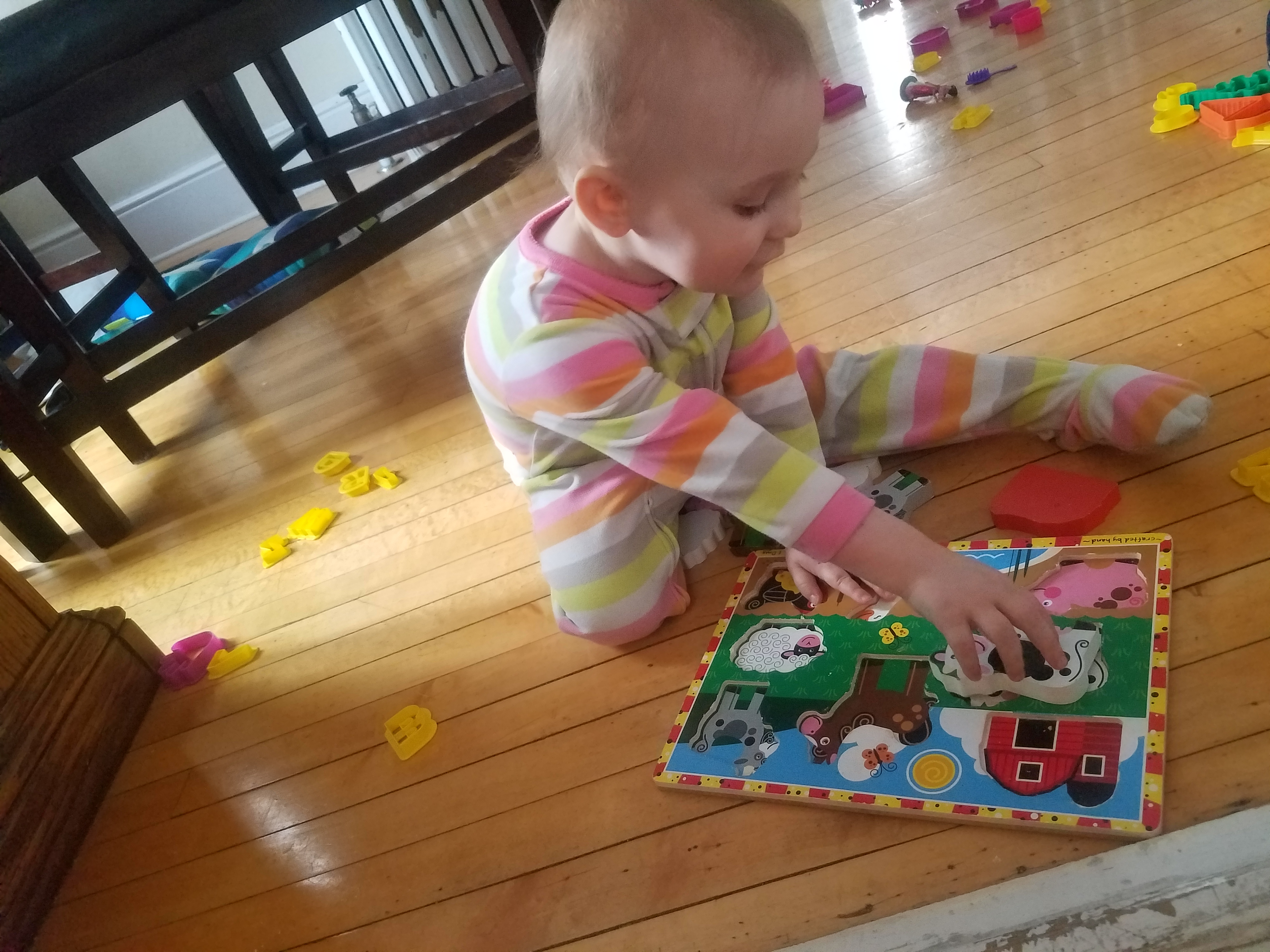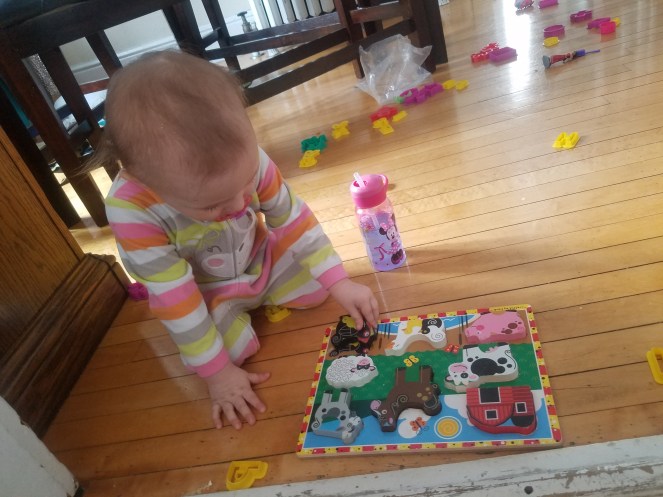 I had to pull out our Melissa and Doug farm animal puzzle for Elizabeth to do. She loves doing this puzzle and I thought it would be a perfect activity to go along with this box.
