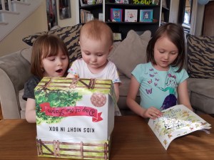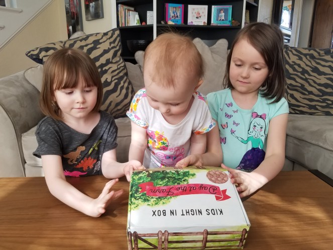 I’m working with Kids Night In Box again this month. My girls were really excited when I told them another box was coming in the mail. The box arrived in the beginning of last week.